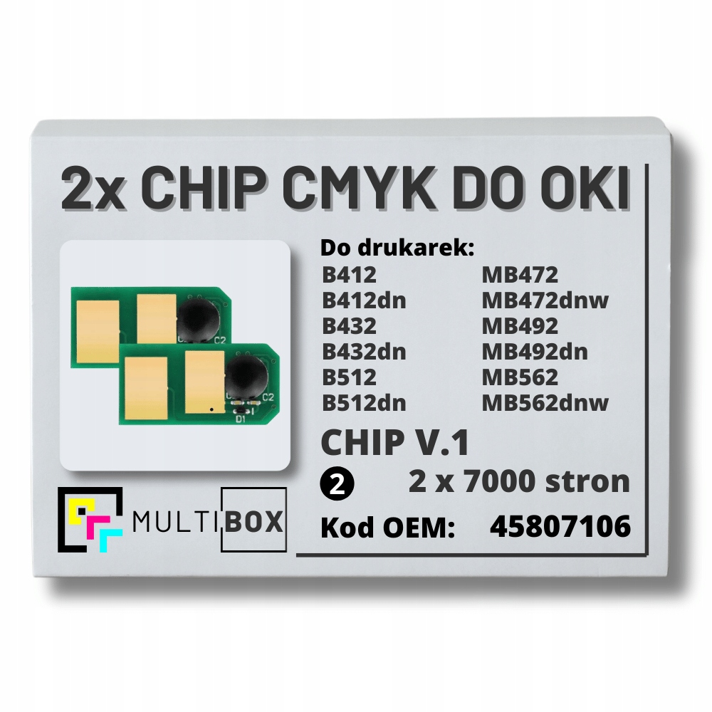 <ул>Набор из 2 микросхем V.1 для регенерации тонера (требуется заполнение контейнера правильным количеством тонера) для OKI B412 B432 B512 MB472 MB492 MB562 45807106 2x7.0K Multibox