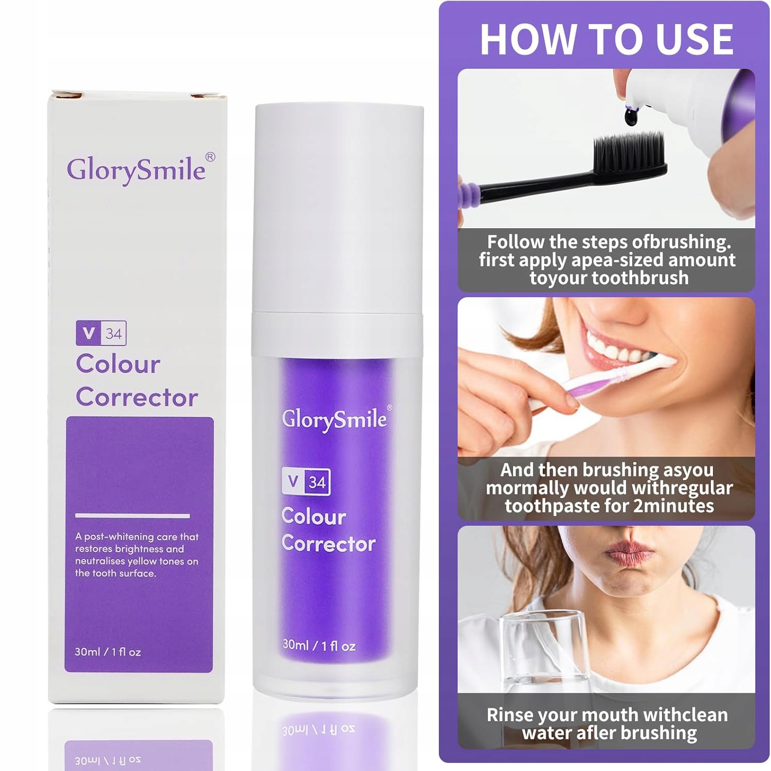 Зубная паста V34 GlorySmile Откройте секрет неповторимой улыбки благодаря инновационной зубной пасте V34 GlorySmile. Зубная паста V34, созданная для осветления зубов, использует передовую технологию коррекции цвета, обеспечивающую потрясающие результаты ухода за полостью рта.