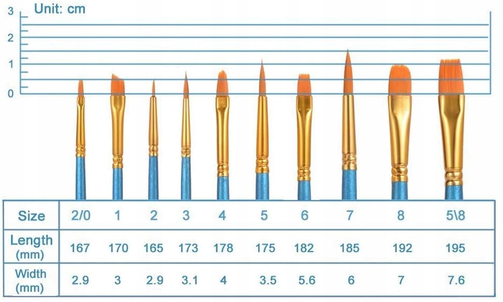 - Упаковка из 20 художественных кистей: этот набор кистей содержит 10 размеров: 5/8 8 6 4 5 3 2 2 1 2/0, который содержит подходящую кисть для получения подробной информации для живописи, а разнообразие форм облегчает смешивание цвета, длина доступна от 17 до 20 см (от 7 до 3 дюймов 7 дюймов). уровни Отличная идея для подарка для детей, семьи и друзей, которые любят рисовать. Основной набор для художественных красок. Легкое смешивание акриловых, акварельных красок, масляных красок, чтобы начать создавать. Маленькие точки. Идеально подходит для акварели, масла, гуашью, акриловой живописи, тела, гвоздей, раскраски лица, миниатюры, модели, керамики, художественной живописи и т. Д. И они делают угловые художественные кисти довольно долговечными. Индивидуально изготовлен и сложен с отличным рабочим мастерством, благодаря которой краска не нажимает на ручки. Вы можете использовать кисти, чтобы сосредоточиться на живописи и всегда быть полными творческих идей. Высушите кисти на улице и храните их в контейнере для перемещения в верхнем положении для более длительного использования. Вы должны быстро бросить их в воду после каждого использования, иначе они затвердевают. Не оставляйте их в воде и не забудьте высушить их хорошо