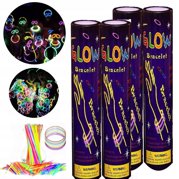 НАБІР З 200 ШТ. XXL ФЛУОРЕСЦЕНТНИХ СТРУЧКІВ 4 x 50 ПАЛИЧНИХ БРАСЛЕТІВ