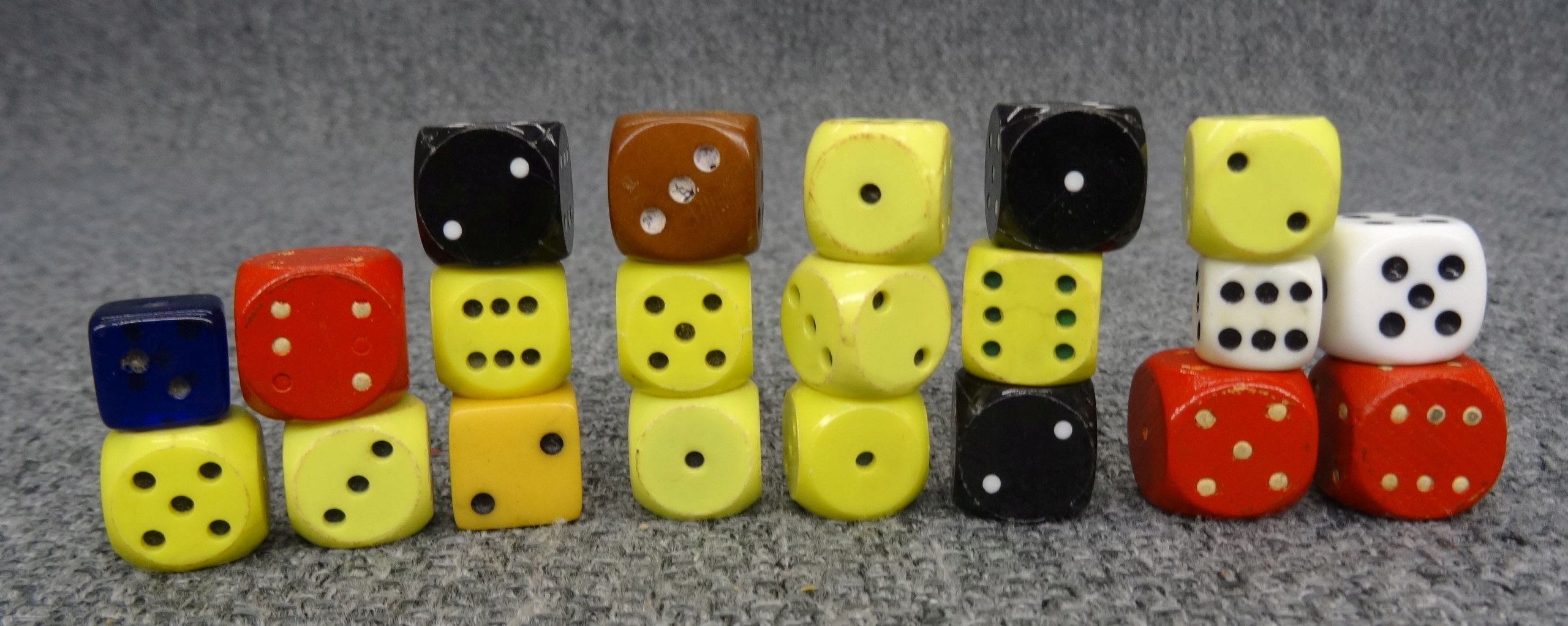 Набор из 21 кубика. Изготовлен из таких материалов, как: дерево, пластик, стекло.
