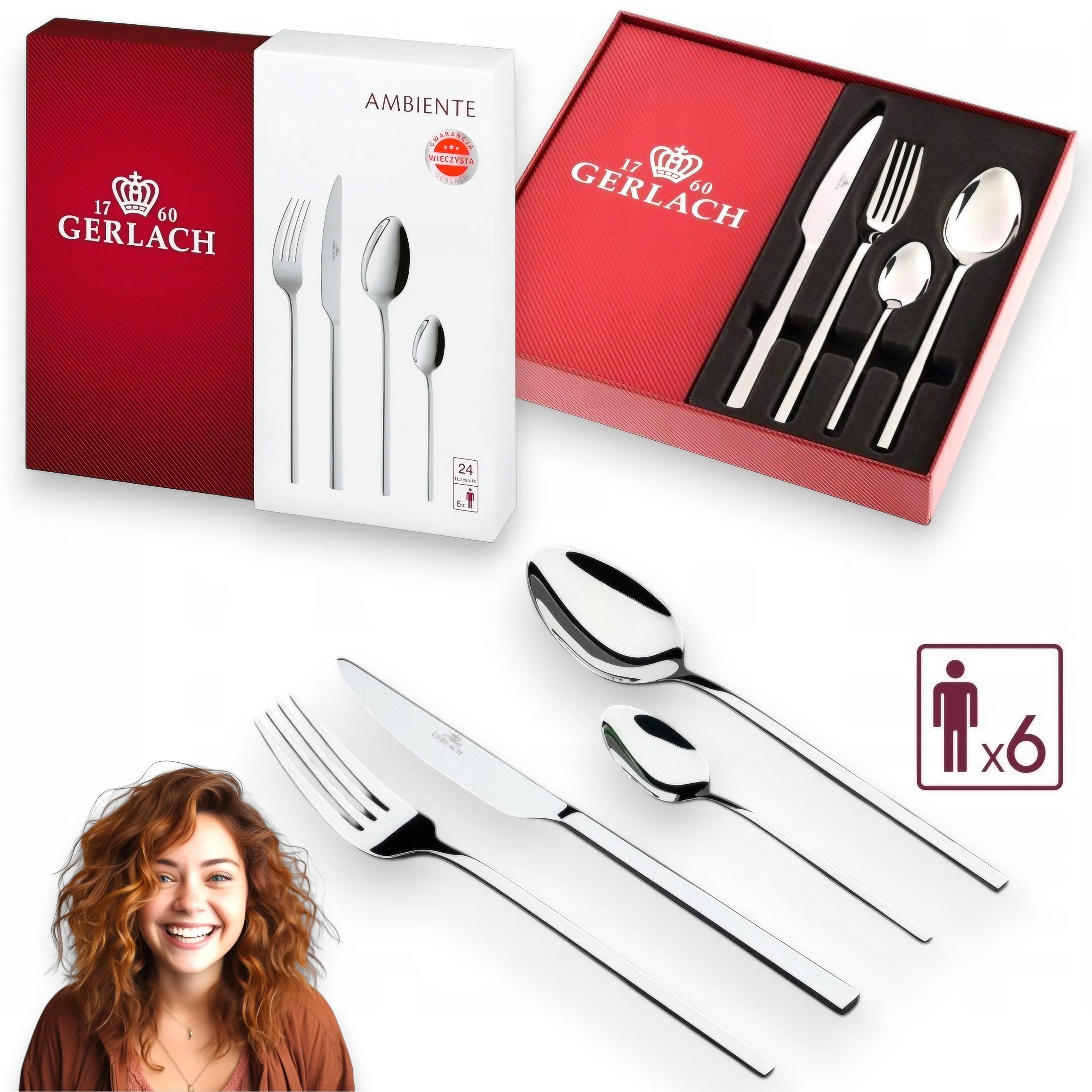 ⭐⭐⭐ НАБОР ИЗ 24 СТОЛОВЫХ ПРИБОРОВ GERLACH AMBIENTE НА 6 ПЕРСОН ГЛЯНЦЕВАЯ ЭЛЕГАНТНАЯ СТИЛЬНАЯ КОРОБКА ⭐⭐⭐