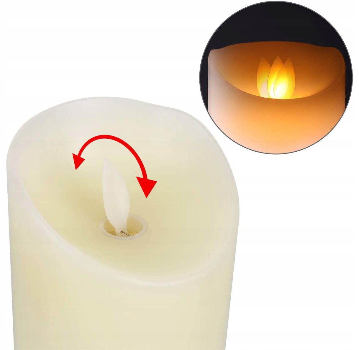 - 1 х светодиодная свеча (размер: диам. 8 см). х высота 10 см).