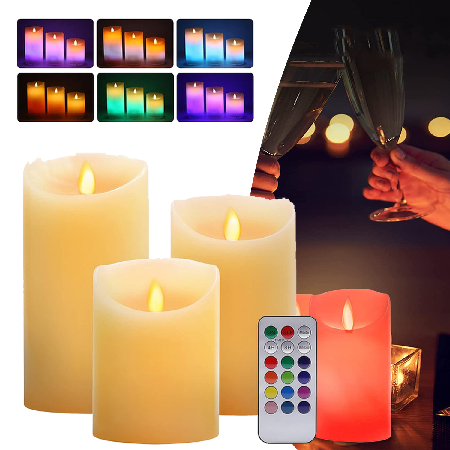 🕯️🕯️На заказ можно заказать несколько размеров. - Эти светящиеся свечи размером 10 см, 12,7 см и 15,2 см станут прекрасным дополнением вашего жилого помещения, офиса или спальня, с 18-кнопочным пультом дистанционного управления.