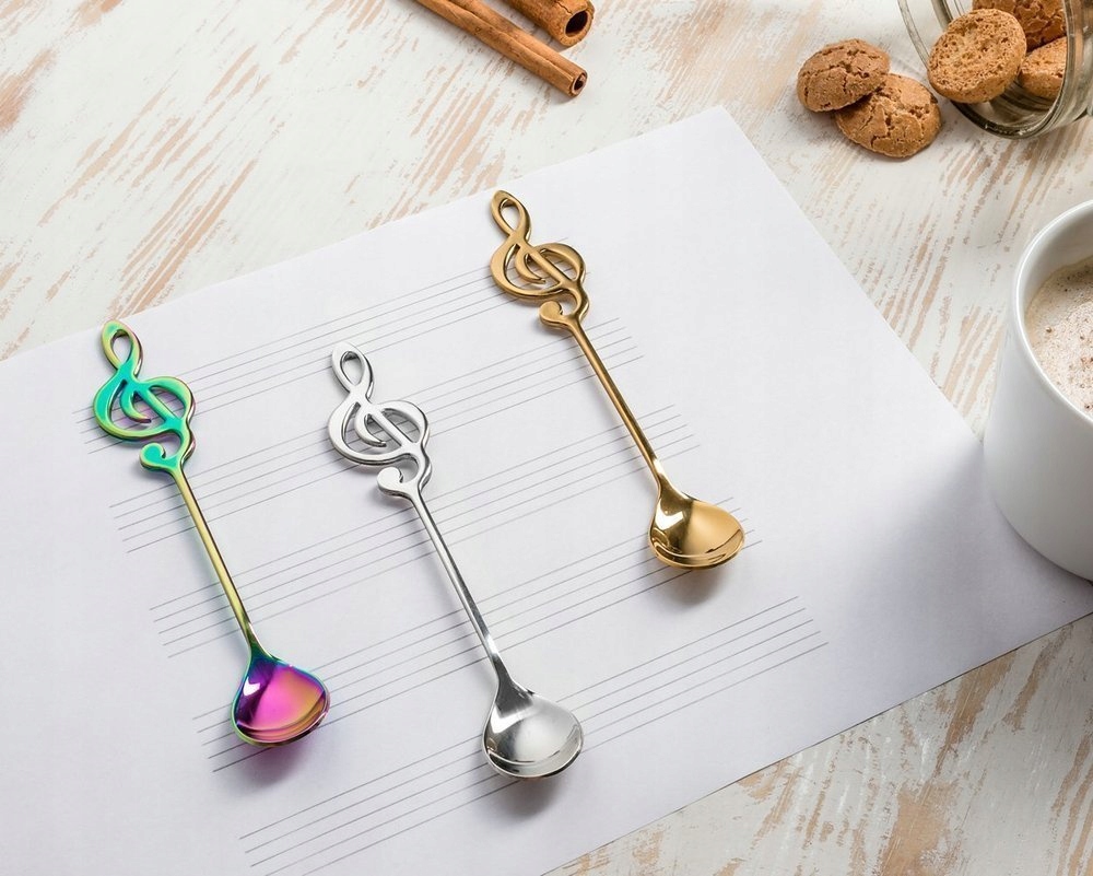 Положительно с утра, ваш любимый кофе или чай, с нашей музыкальной ложкой с ручкой в форме шепота. Музыкальные чайные ложки в трех цветах: золото, серебро и радуга, чтобы каждый любитель музыки мог найти что -то для себя, и все пошло по пети :)