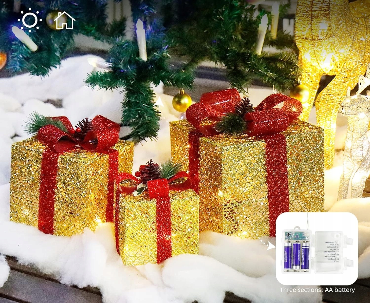 Набор CCLIFE из 3 подарочных коробок со светодиодной подсветкой, рождественская коробка, елочная подсветка, рождественское украшение на батарейках