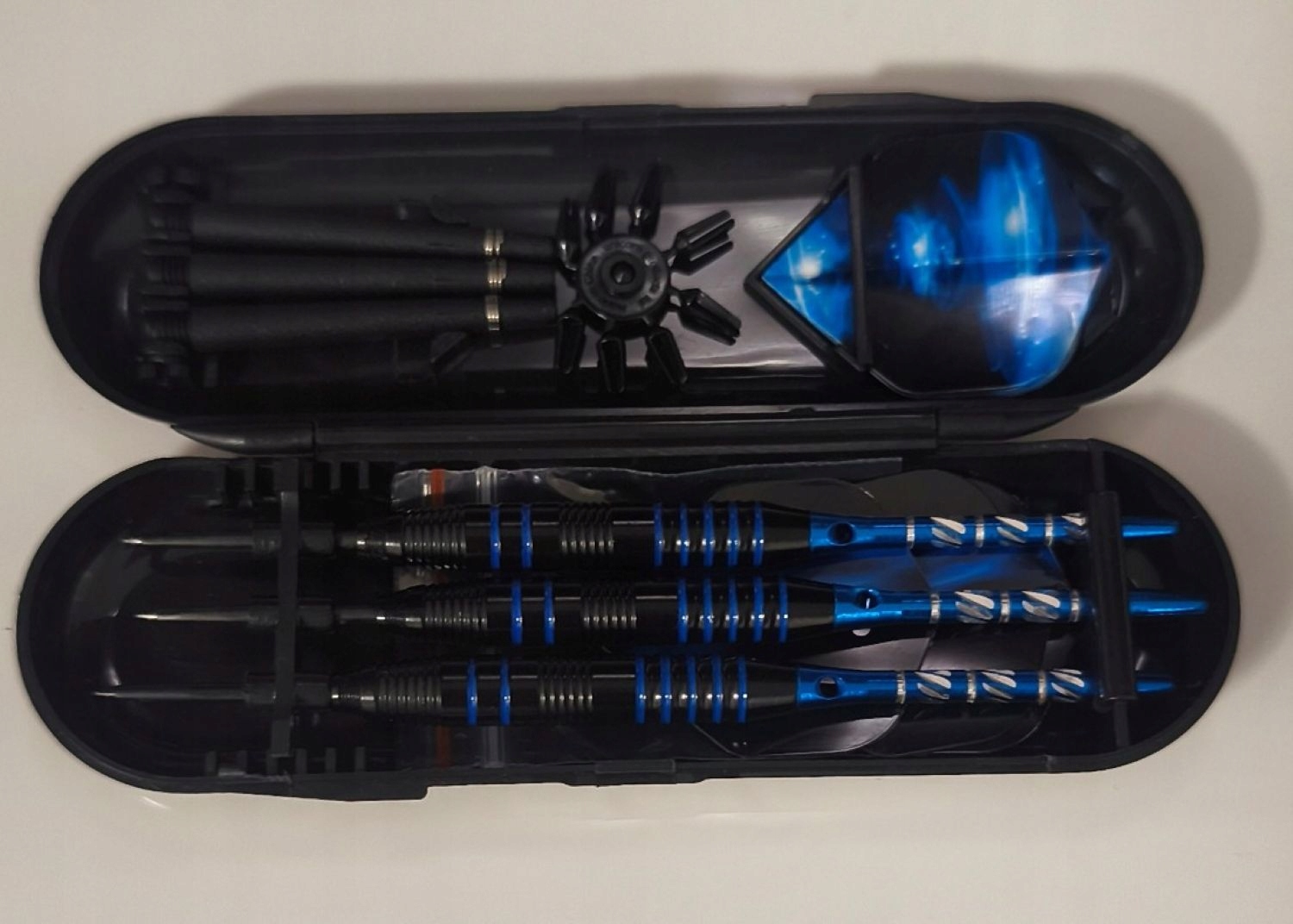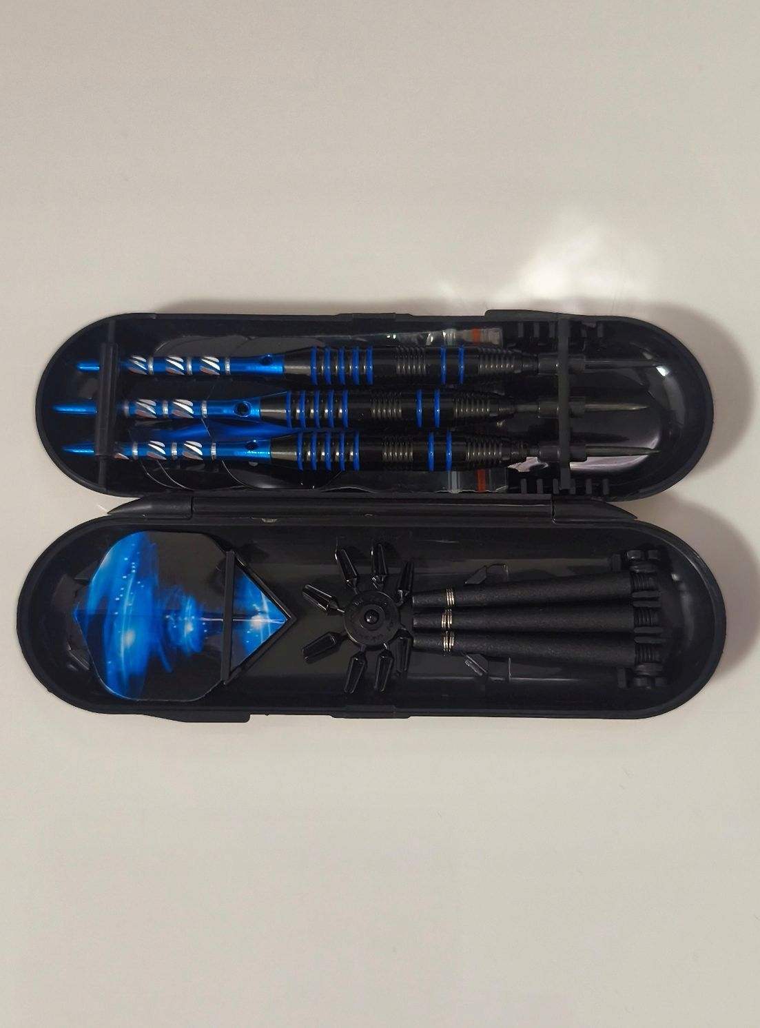 Полный набор дротиков для игры в дартс, предназначен как для начинающих, так и для более продвинутых игроков. Все упаковано в практичный жесткий кейс, который защищает элементы набора и облегчает хранение и транспортировку.