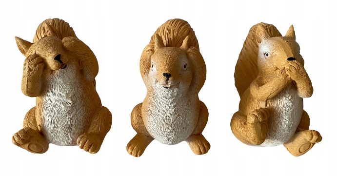 Набор из 3 мудрых животных, которые, по образцу японских обезьян, используют девиз: «не видеть зла, не слышать зла, не говорить зла», представленные как мудрые белочки.