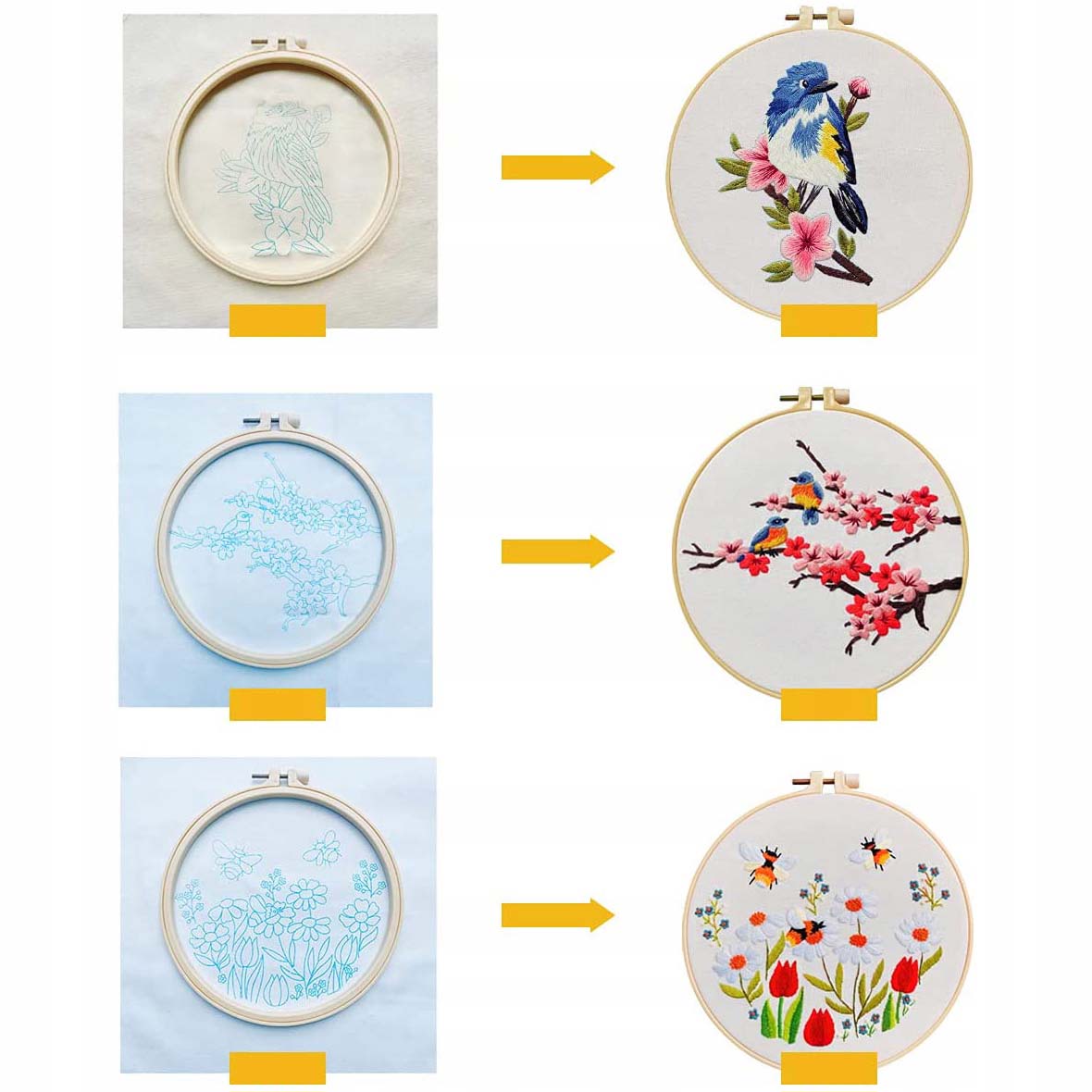 НАБОР ИЗ 3 ГОТОВЫХ УЗОРОВ ВЫШИВКИ + АКСЕССУАРЫ ДЛЯ ВЫШИВКИ