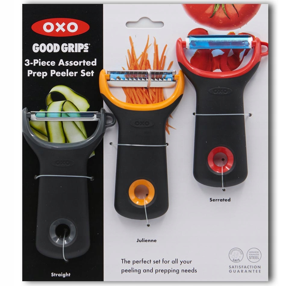 Набор из трёх ножей для очистки овощей OXO — это функциональные повседневные товары в различных цветах.