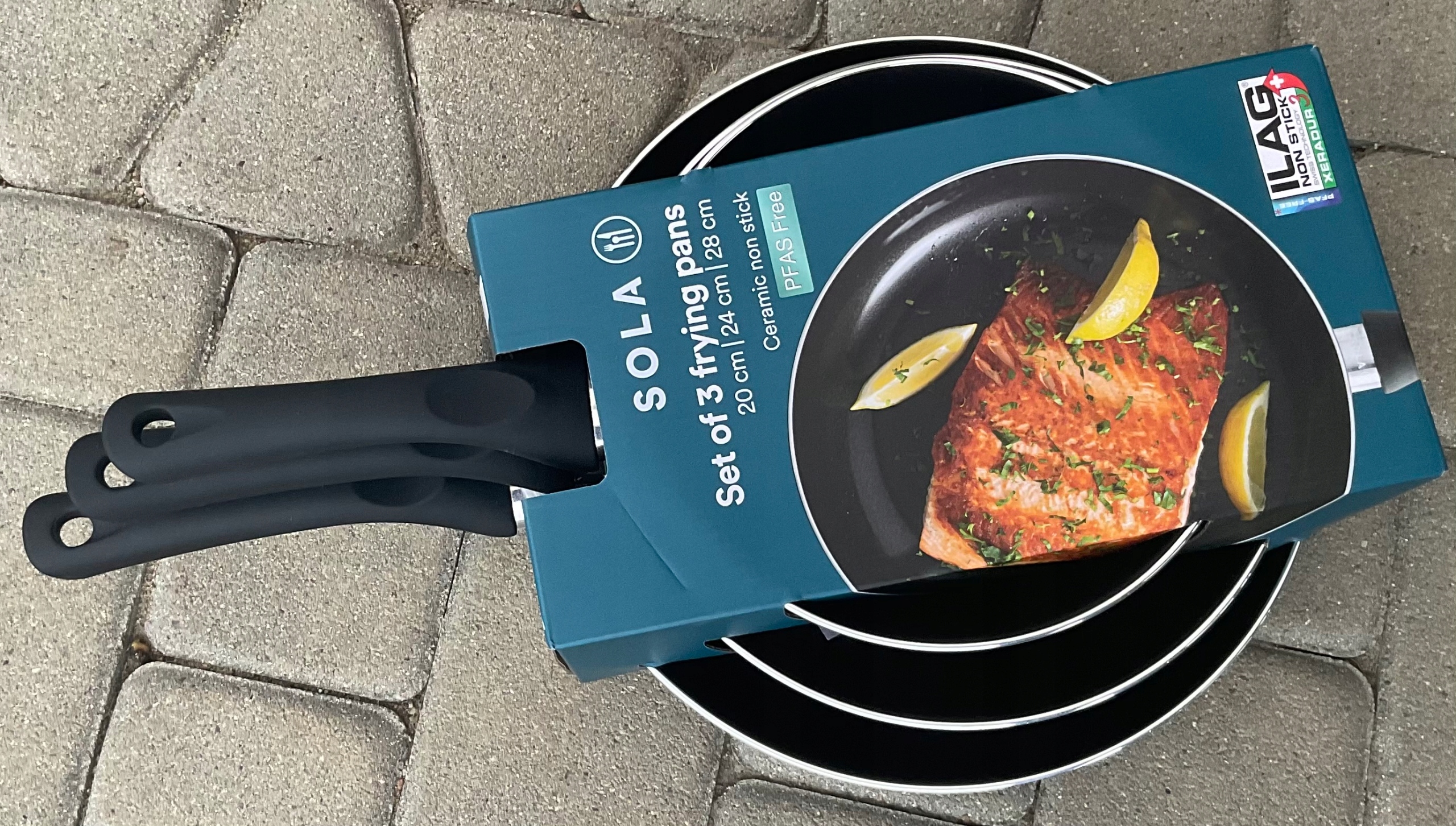 Sola Pans были изготовлены из алюминия, покрытого керамическим покрытием ilag xeradur 3 - минимизации использования жира. Устойчивые к царапинам и высокой температуре не содержат PFOA. Такое мытье, однако, обнажает керамическое покрытие и ручку для более быстрого износа. Поэтому рекомендуется мыть. Cm