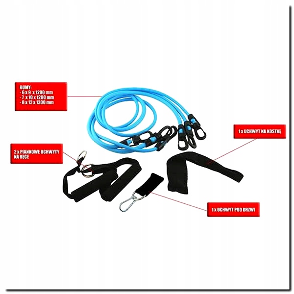TX01 HMS — комплекс упражнений. Изделие использует вес тела пользователя для улучшения его физической формы и силы. Высокое качество, продуманная конструкция и долговечность гарантируют успешные тренировки в любых условиях. В комплект входят три эспандера, две пенопластовые ручки, один держатель для лодыжки и один дверной держатель.