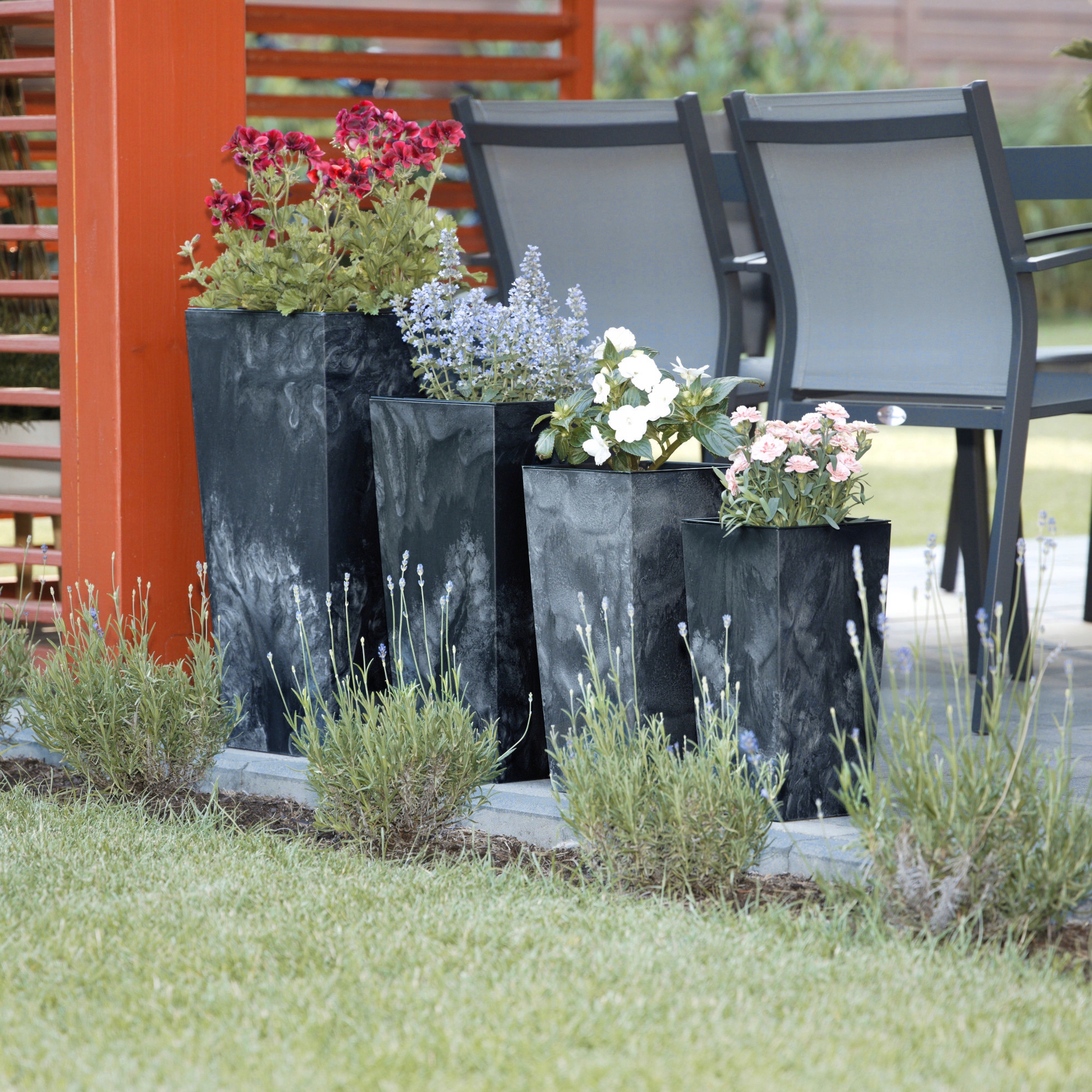 Набір з 3 кашпо, висока вставка антрацит 45 50 55 см