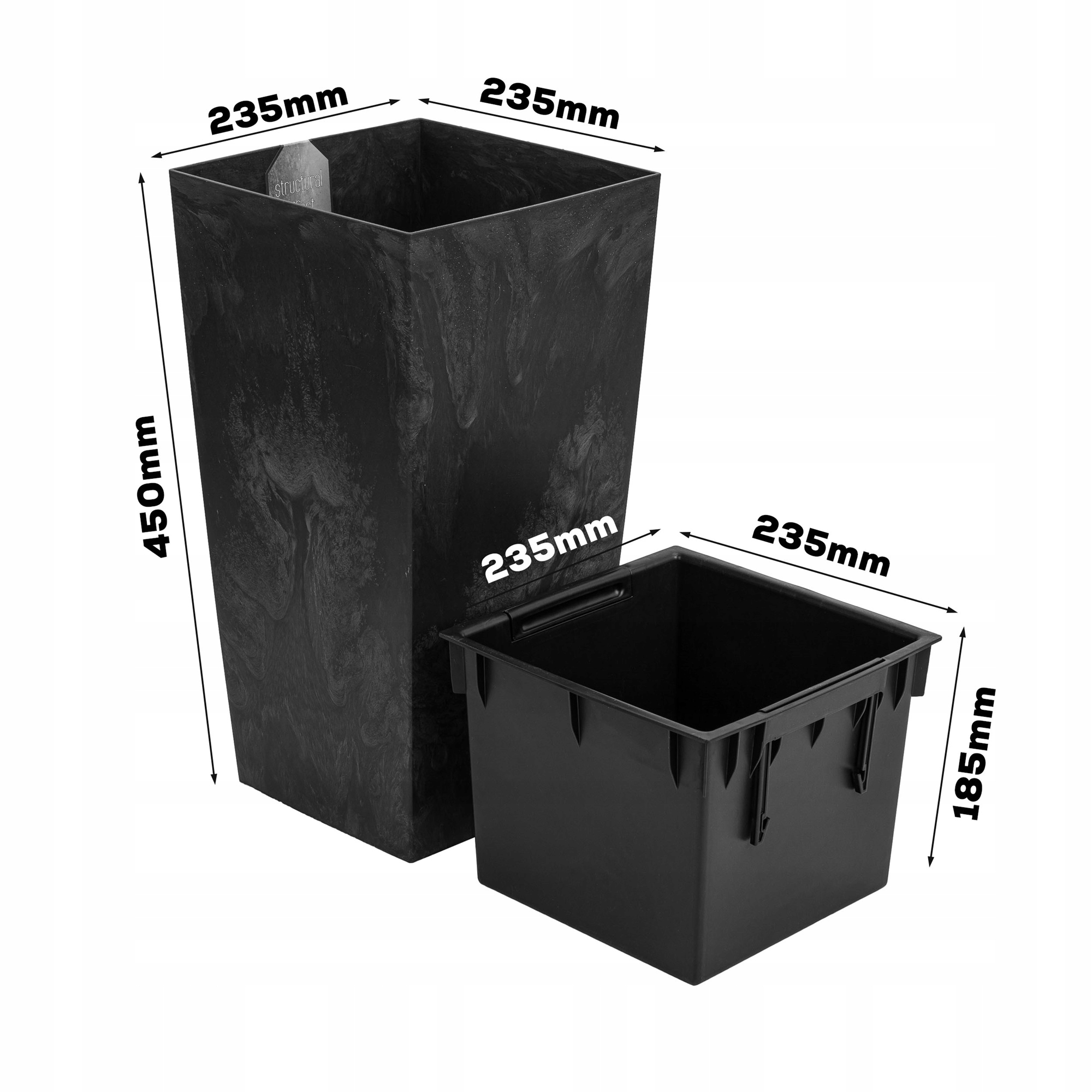 - Размеры горшка 1 (ДхШхВ): 23,5х23,5х45 см.