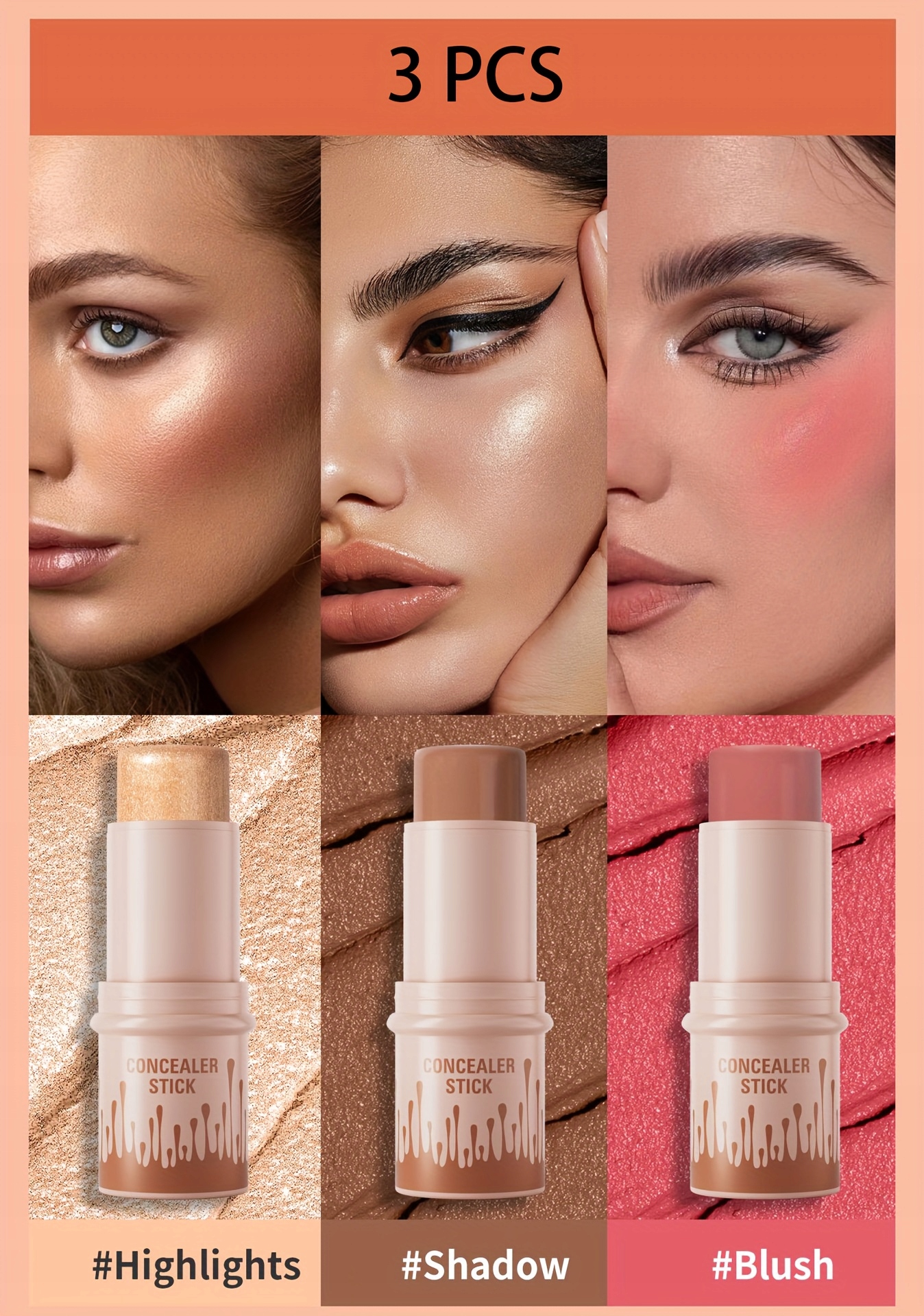 Набор из 3 палочек для контурирования, розового, маркера и бронзера, другой