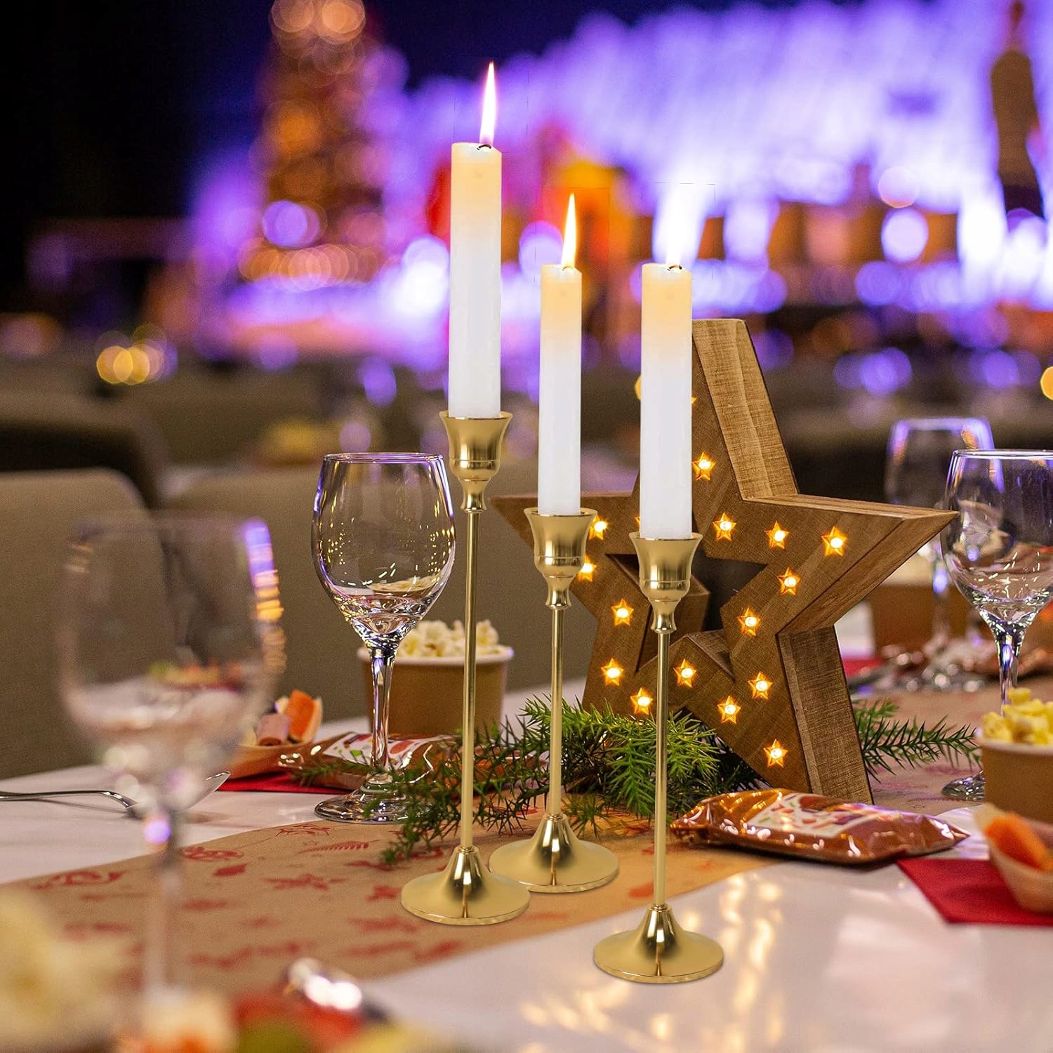 Набор из 3 подсвечников Элегантные золотые подсвечники ЗОЛОТЫЕ МЕТАЛЛИЧЕСКИЕ ПОДСВЕЧНИКИ