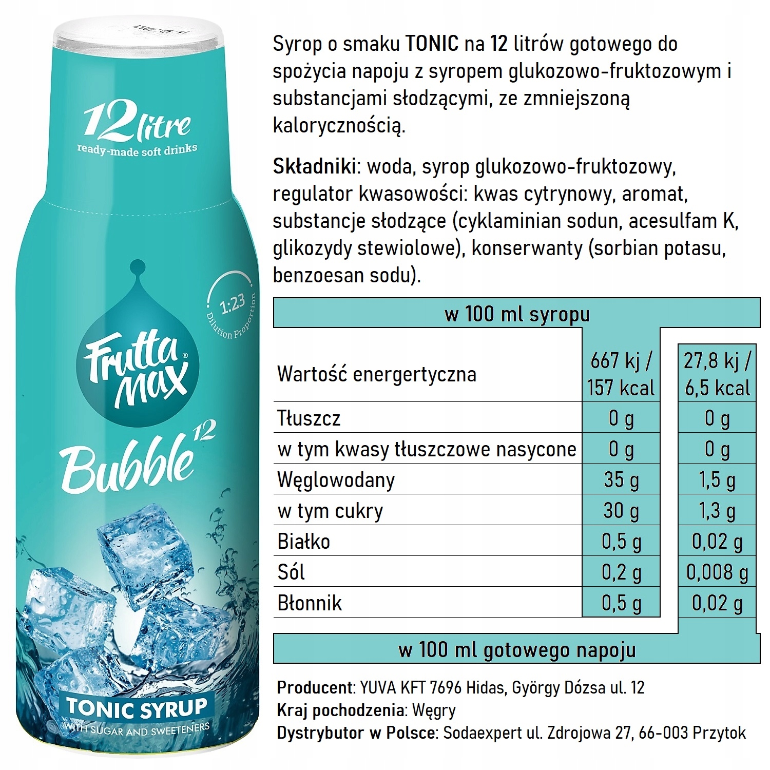 Объем: 500 мл - достаточно для приготовления 12 литровнапитка.