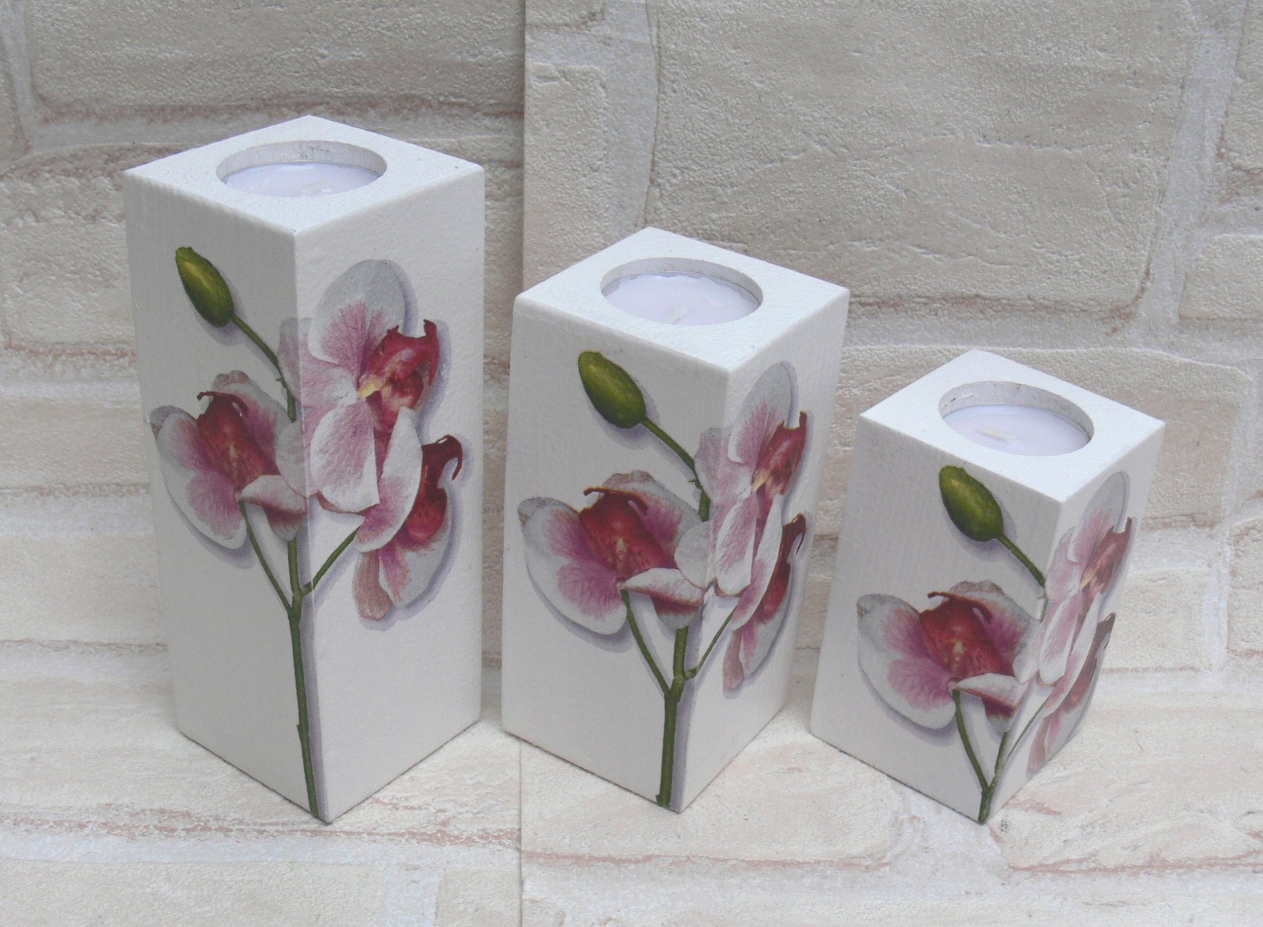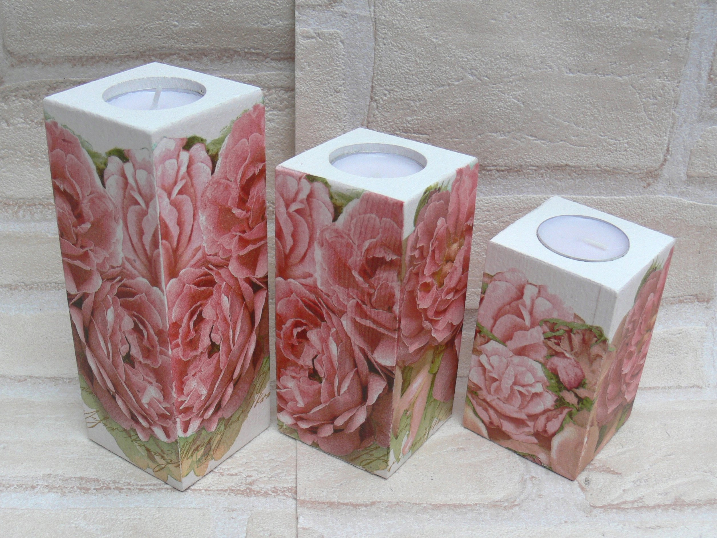 набор из 3 деревянных подсвечников, изготовленный с помощью техники ручного декупажа, окрашенного акриловыми красками, h2> , обеспеченный несколькими слоями экологического лака без запаха для стандартных свечей - обогревателей. h2> Причины добавят очарование в ваш интерьер, или вы сделаете оригинальный подарок рядом с вами. Полем .