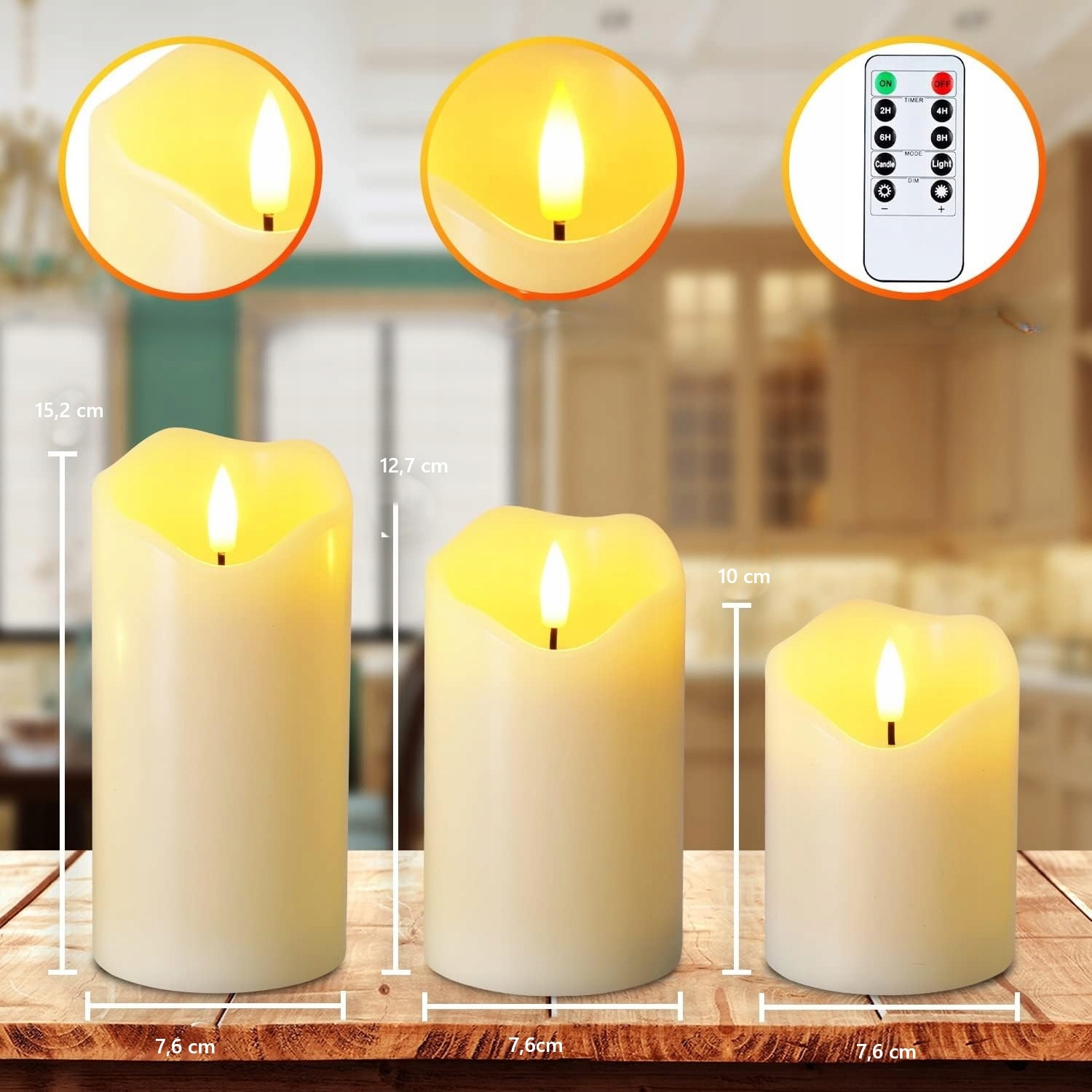 Набор из 3 светодиодных свечей с пилотом и таймером