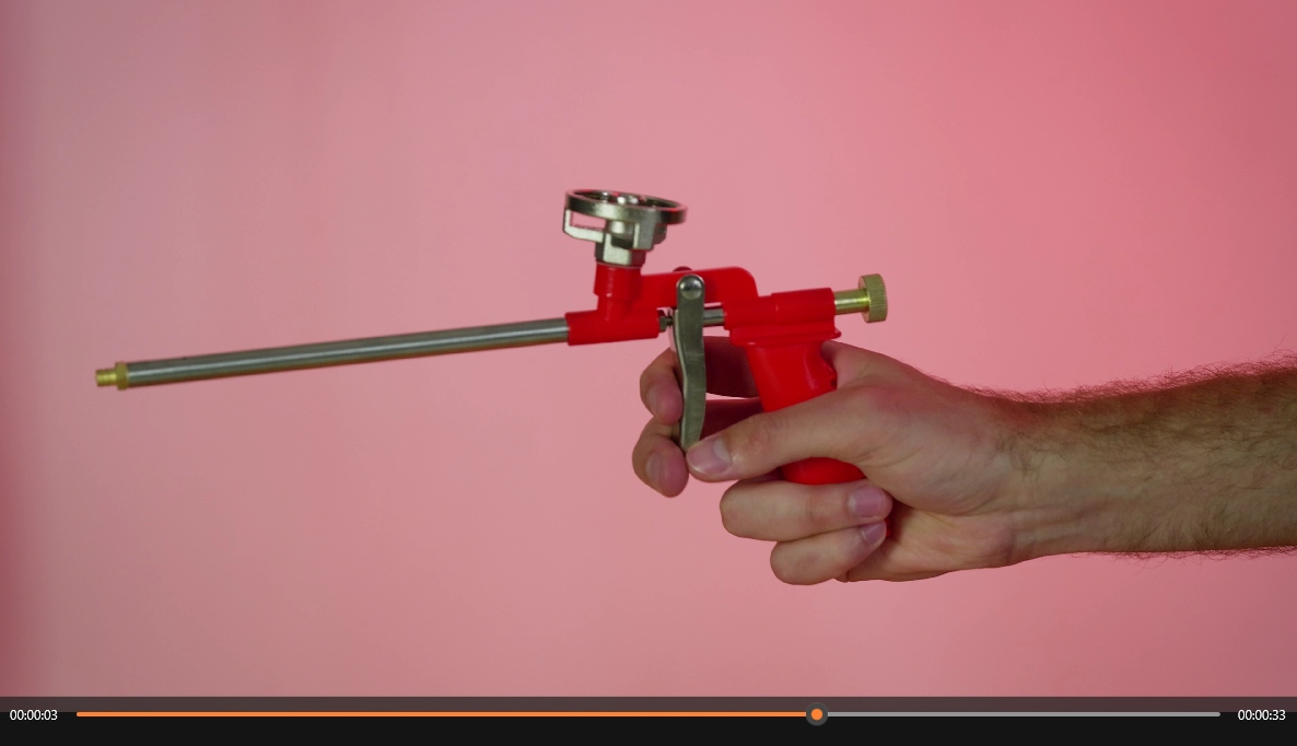 • Баллон с пеной вкручивается в специально сделанное отверстие стандартного размера. В пистолете используется рычаг, который при нажатии на спусковой крючок выталкивает пену из ствола.