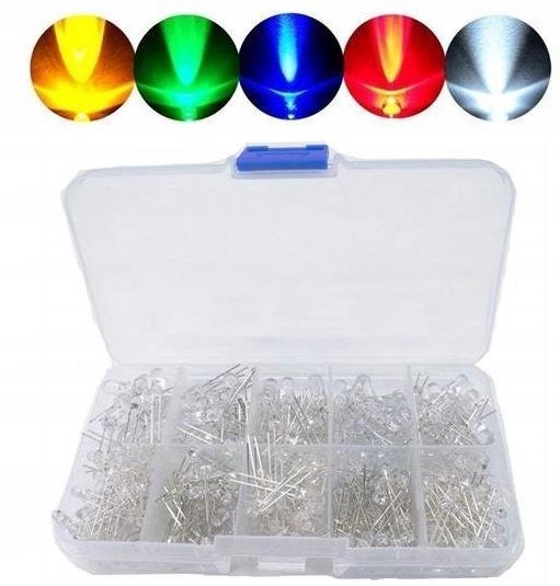 Набор 300 шт. прозрачные светодиоды 5 цветов: синий, зеленый, желтый, белый и красный.