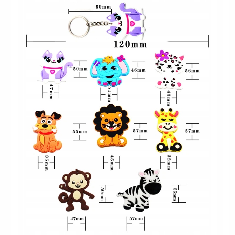 Материал и назначение подарка – выделенные преимуществаИзделие изготовлено из прочного ПВХ и прочного металла, включая удобное кольцо с цепочкой – сочетание гарантирует долговечность и удовольствие от ношения, без потери формы и эстетики. Брелоки удивляют милыми мультяшными узорами в разных стилях - они очаровательны, интересно оформлены, практичны и в то же время визуально привлекательны. Это идеальный творческий подарок: идеально подходит в качестве рождественского подарка для детей, пар, семьи, друзей и коллег. Его универсальное использование делает его подходящим для любого случая - от дня рождения, юбилея и семейных ужинов до встреч с друзьями и других важных моментов, всегда доставляя радость получателю.