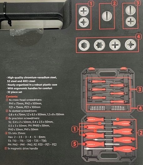 НОВЫЙ НАБОР ИЗ 32 ОТВЕРТОК И БИТ - PARKSIDE С ЧЕМОДАНОМ