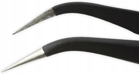 - Заостренный, изогнутый пинцет: изогнутым пинцетом можно дотянуться даже до труднодоступных элементов.