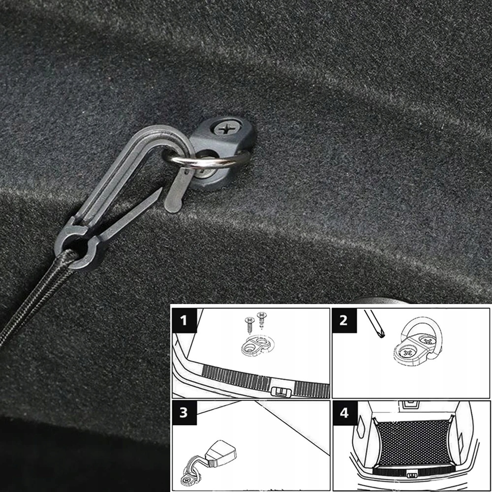 Наборы из 4 напольных крючков для багажника, универсальных для сетки тросовых ремней.