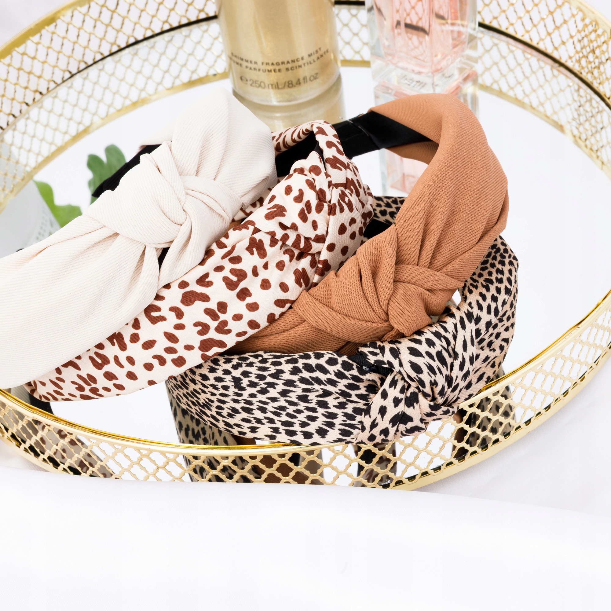 Набор из 4 женских резинок для волос с леопардовым узором и гладким узлом.
