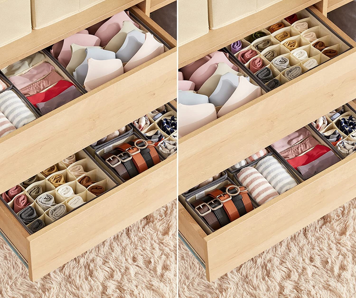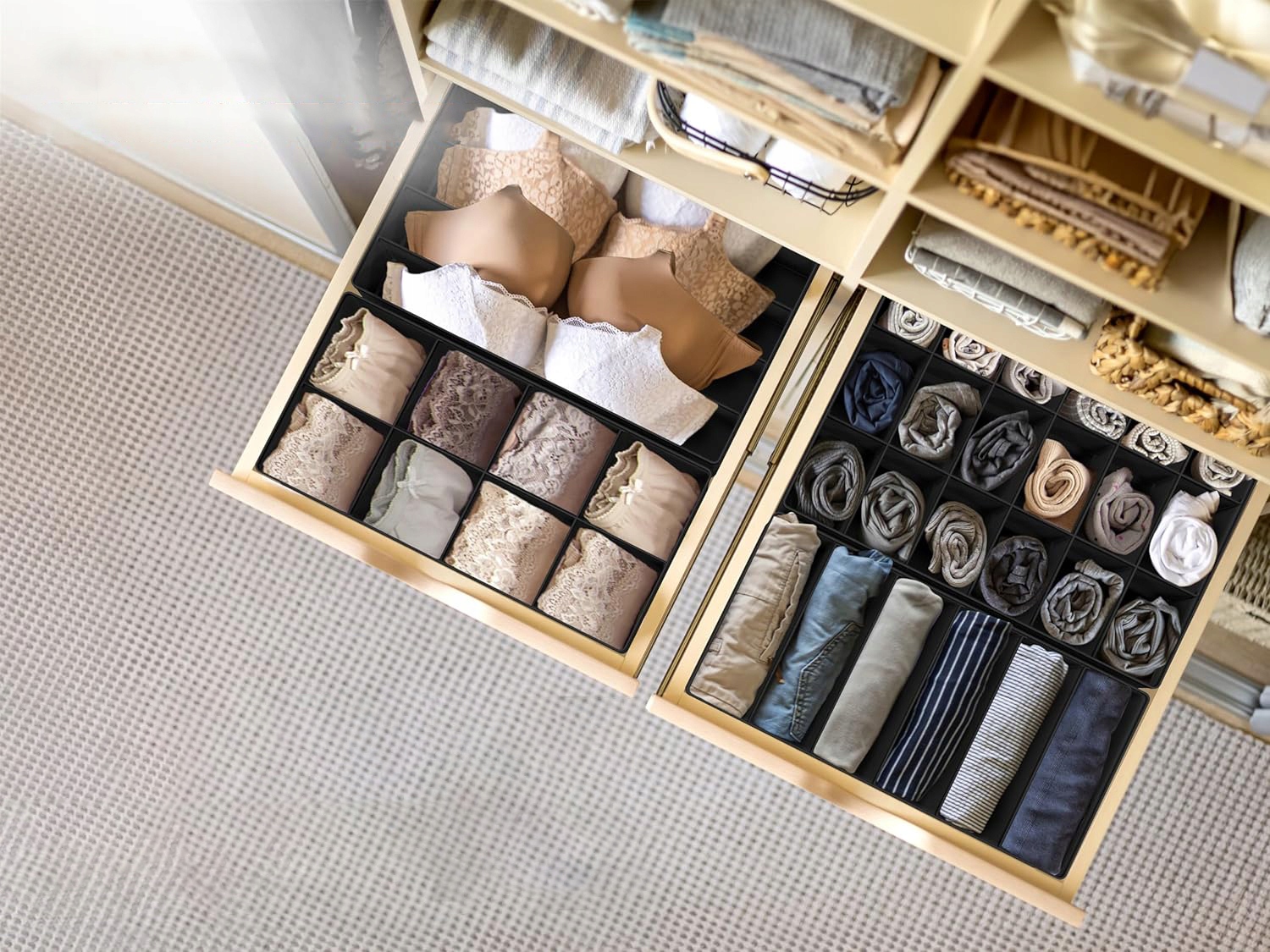- Экономия времени при хранении: С этим органайзером для нижнего белья вам не придется беспокоиться о беспорядке в ящиках или шкафах, где вы можете подготовить трусики или бюстгальтеры.