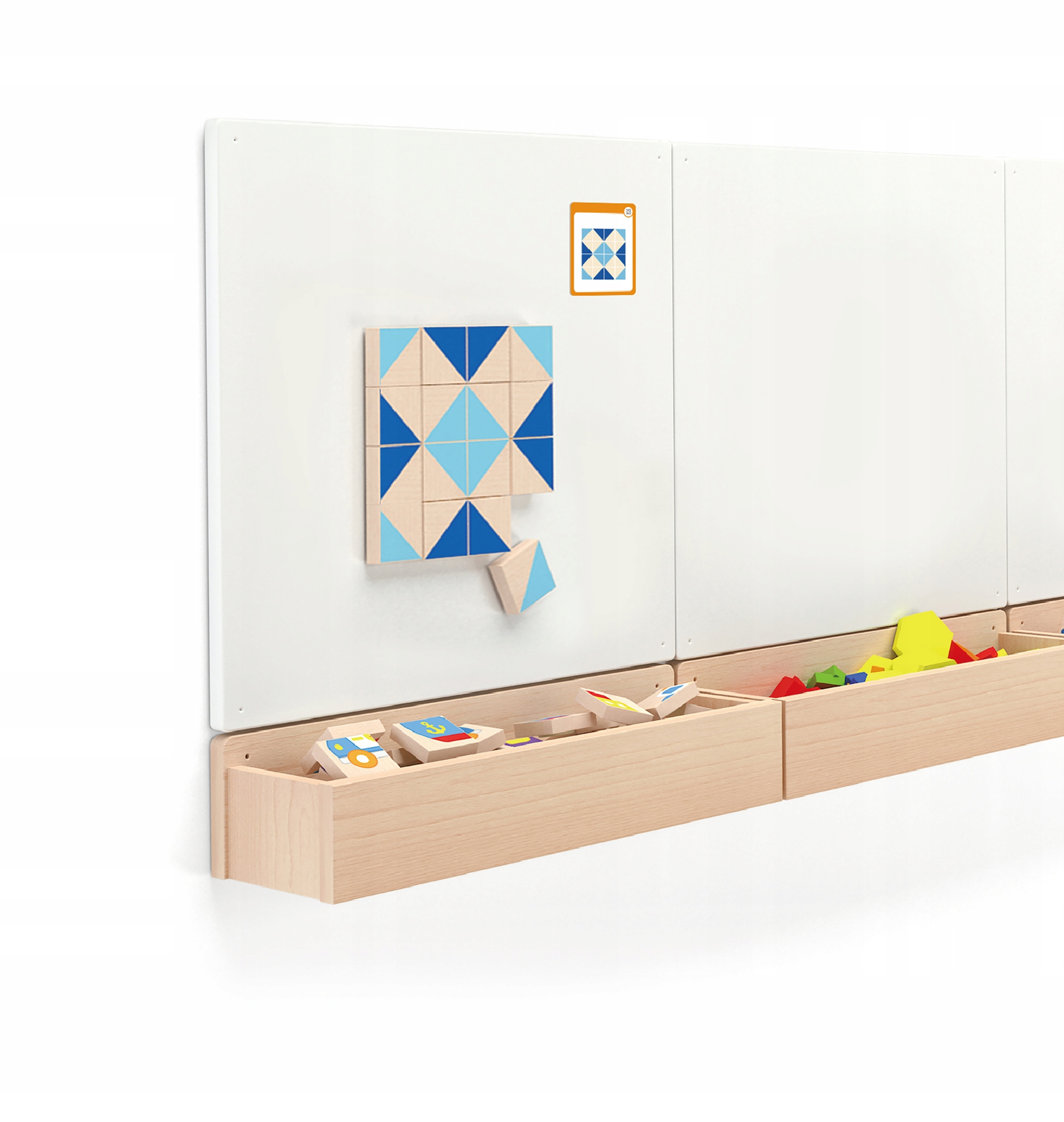 Viga предлагает магнитную мозаику для компоновки. В состав этого замечательного изделия входят 40 разноцветных деревянных кубиков различных форм и цветов и 20 досок/карточек с узорами, которые дарят вдохновение и помогают в создании изображений.