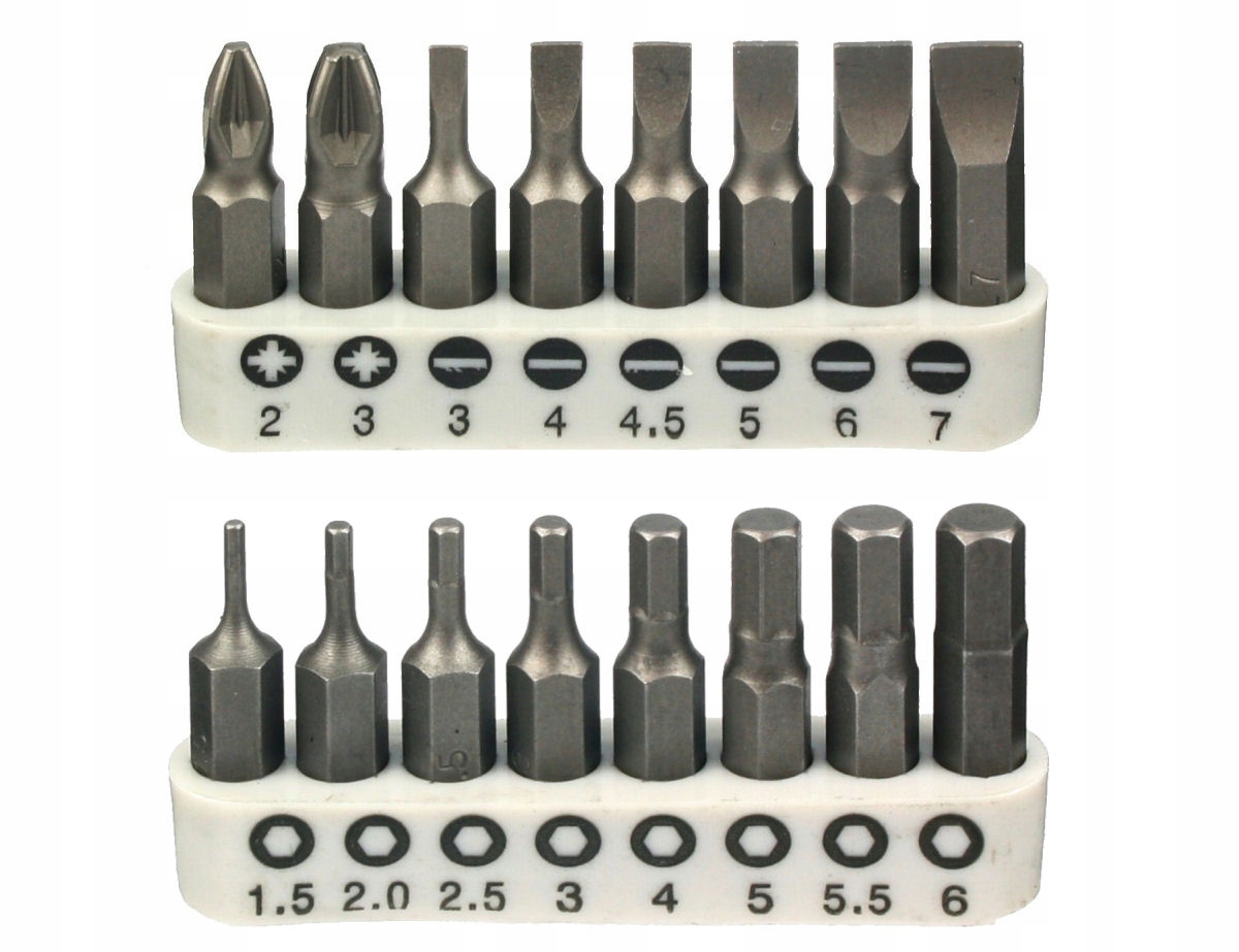 • Биты типа HEX: 1,5 мм, 2 мм , 2,5мм 3мм, 4мм, 5мм, 5,5мм, 6мм – 8 шт.