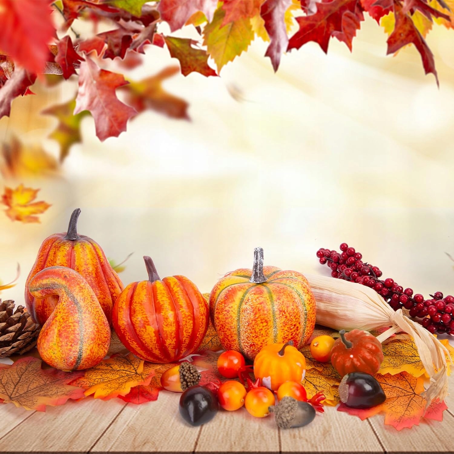 Классические осенние украшения: В предложение входят символические осенние фрукты и овощи, такие как тыквы, кукуруза, желуди и сосновые шишки, собранные в честь сезона сбора урожая этого года. Каждый искусственный элемент реалистичный и яркий, имеет приятную текстуру и выглядит настоящим, добавляя очаровательный оттенок осени.