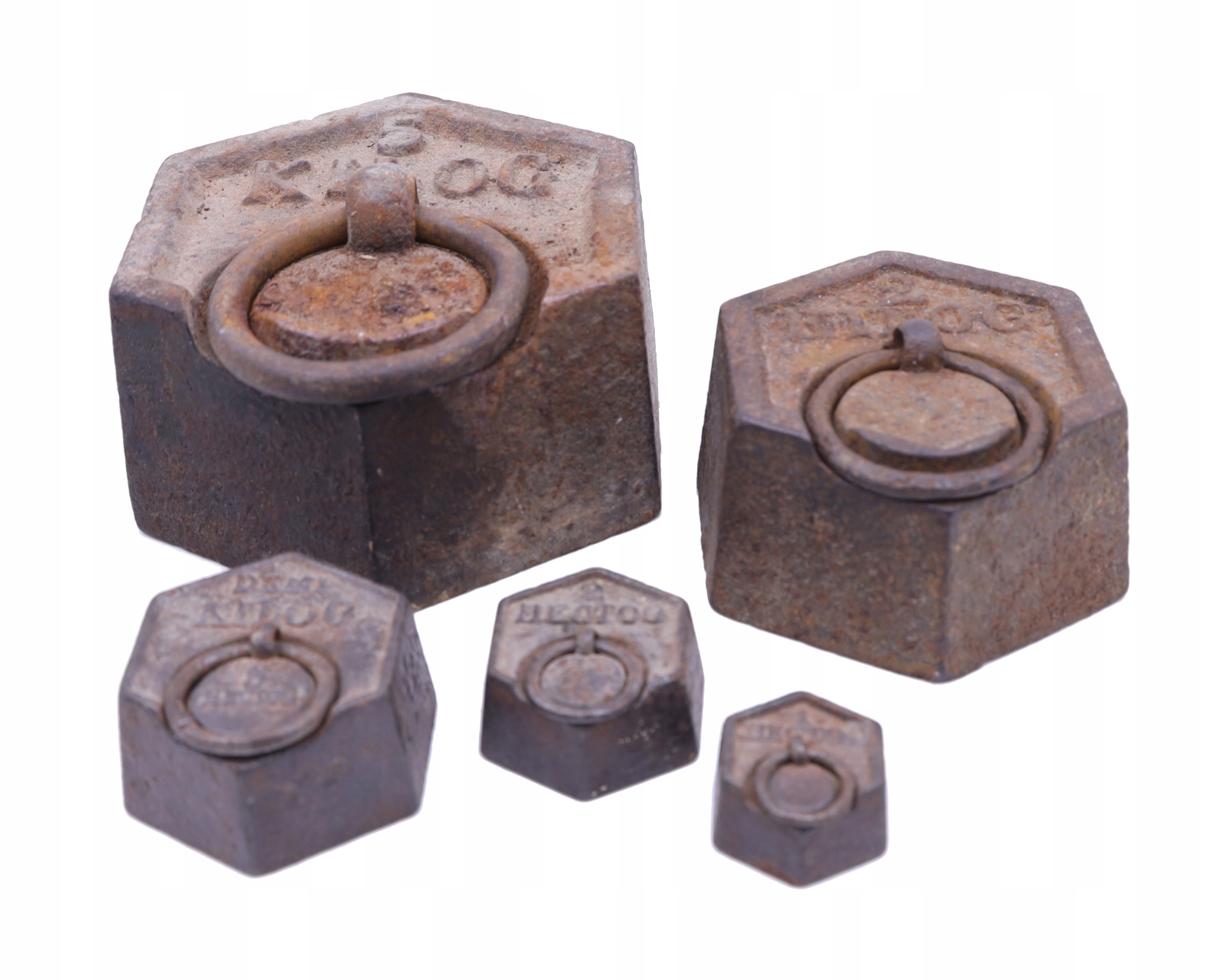 Набор из 5 гирь Hectog, вероятно, XIX века. Размеры: высота 6,5 х 12 х 14 см, 5,5 х 9,5 х 11 см, 3 х 6 х 6,5 см, 2 х 4,5 х 5 см, 2 х 3,5 х 4 см. Рекомендую