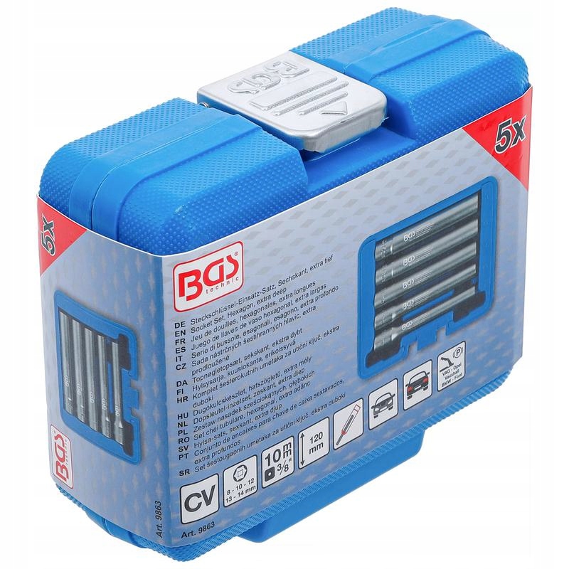 Набор из 5 глубоких шестиугольных колпачков 8-14 мм, 10 мм привода (3/8 "), BGS