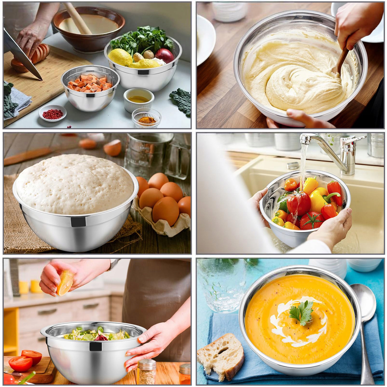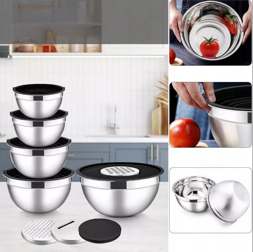 Набор из 5 кухонных мисок из нержавеющей стали: