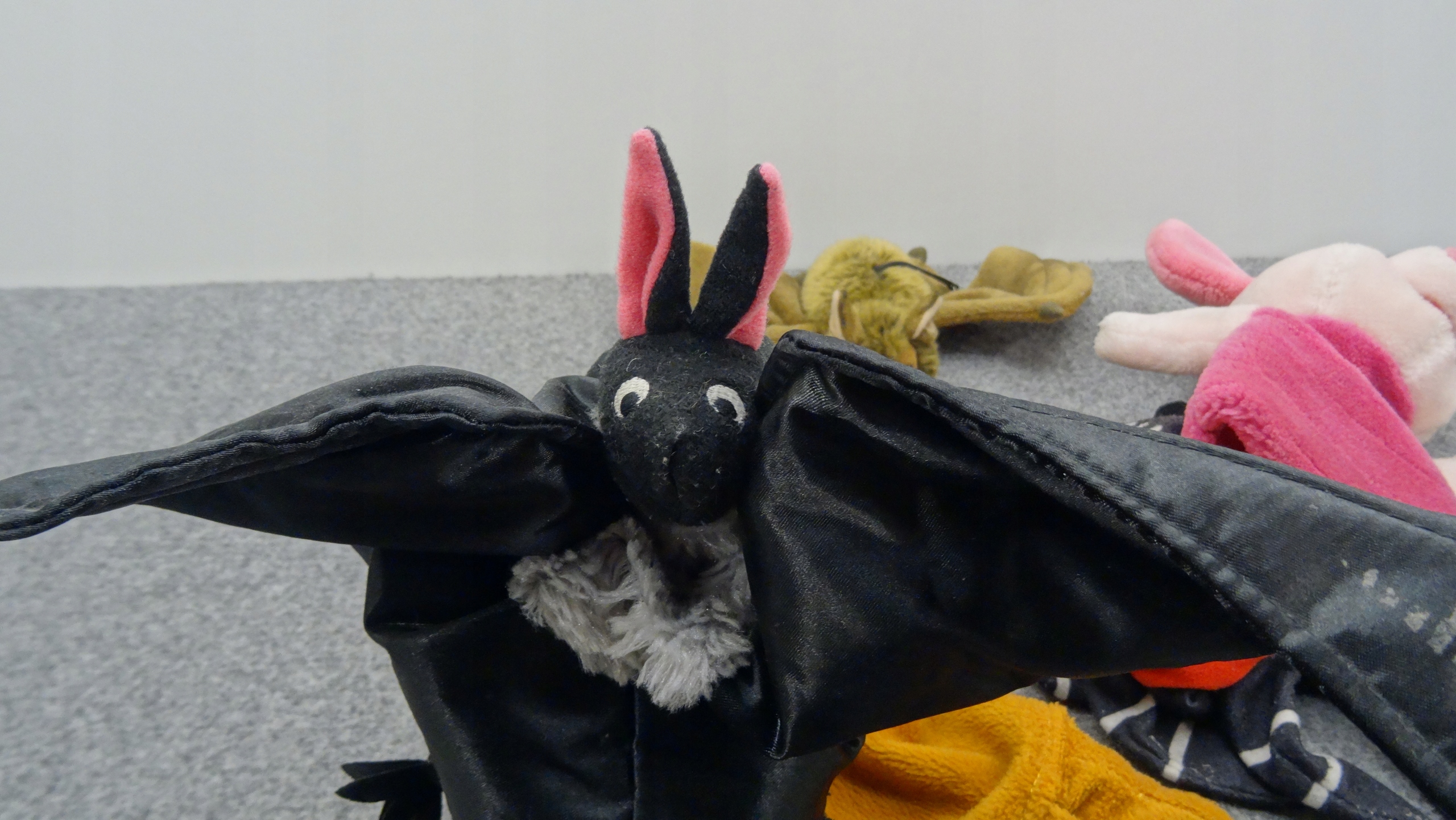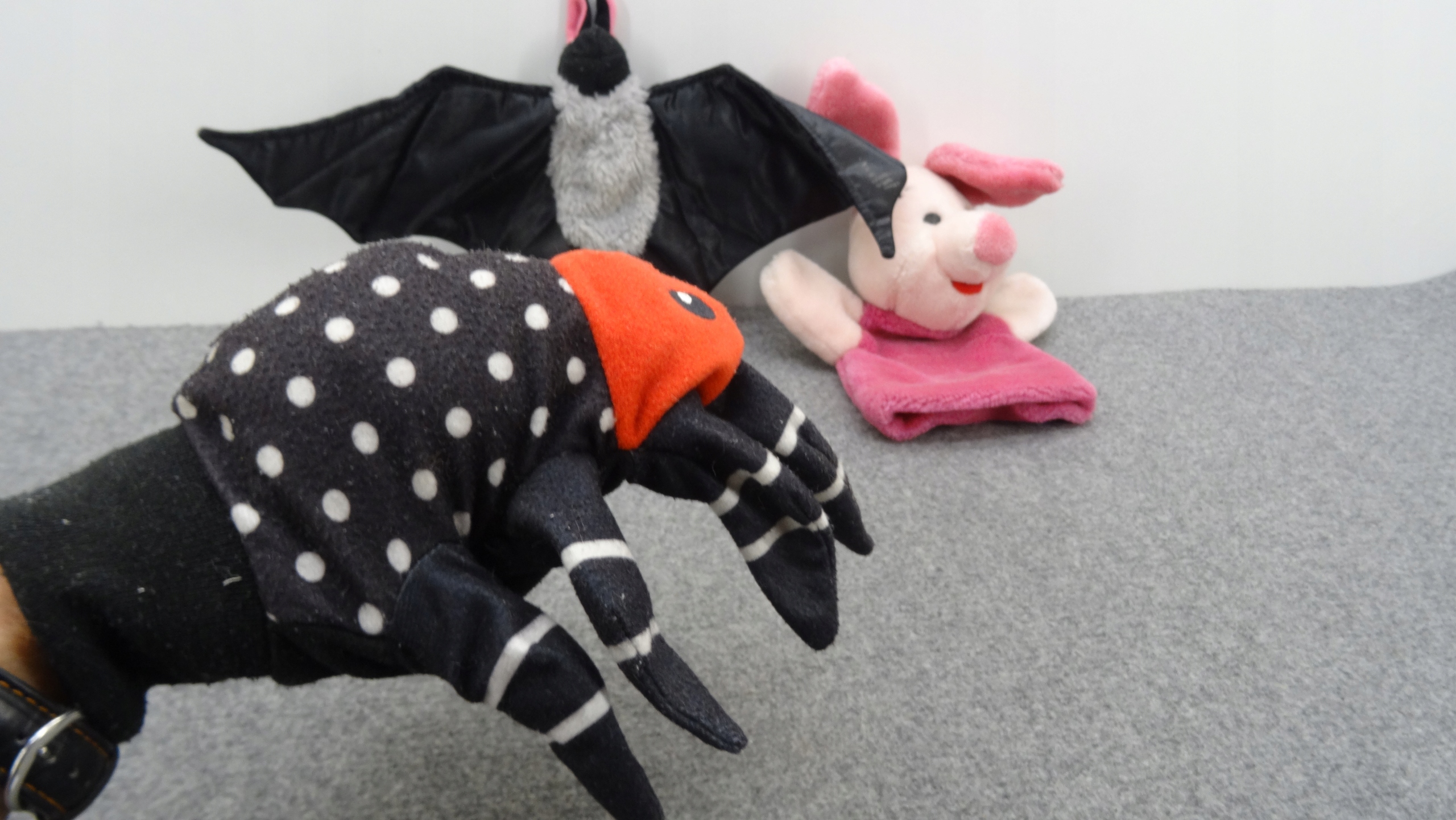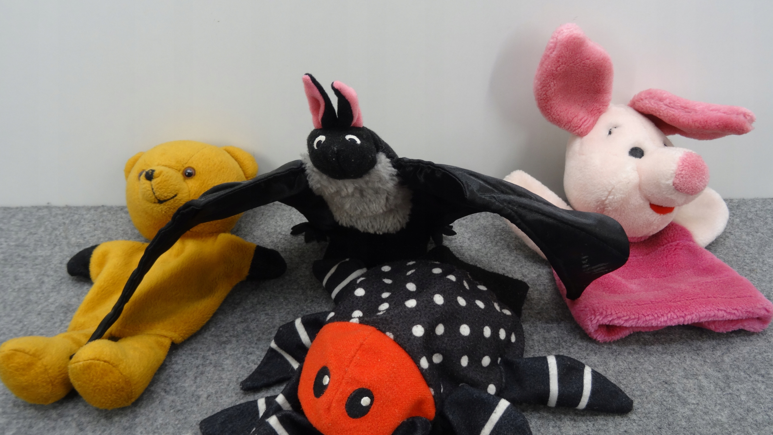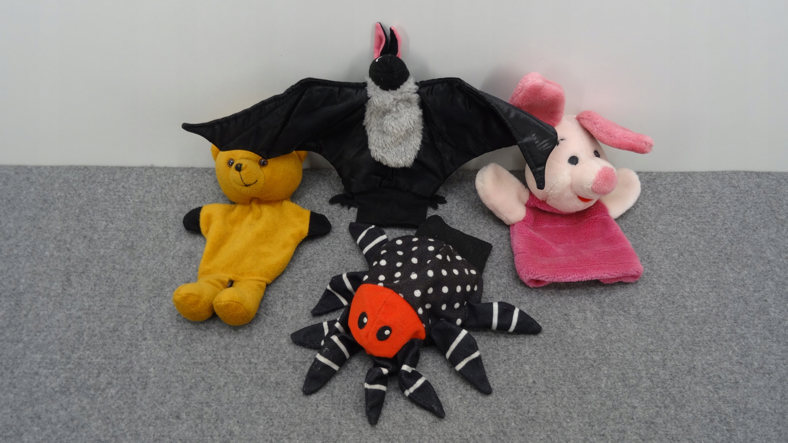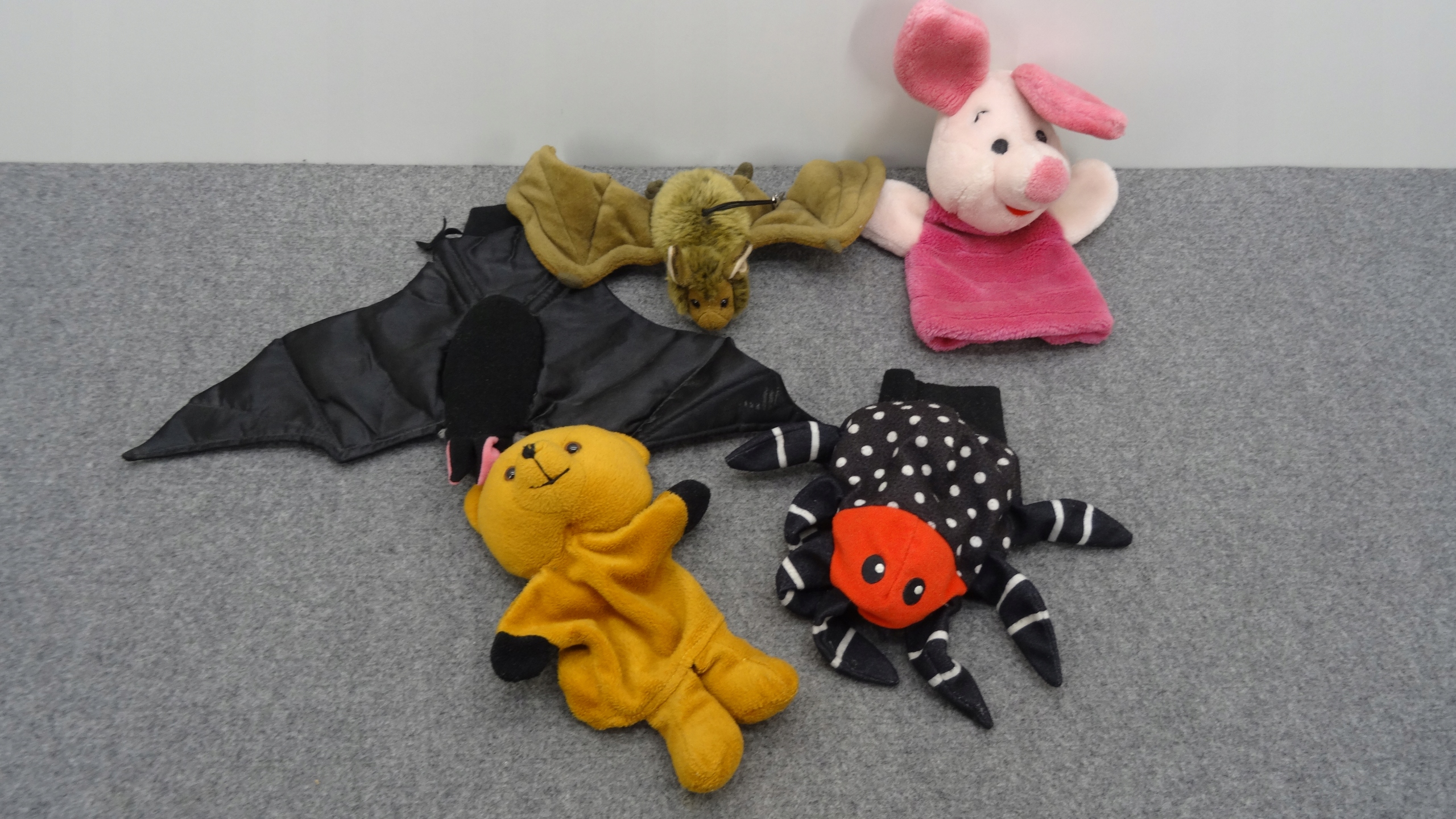 Набор из 5 мягких игрушек, ручных кукол-талисманов: две летучие мыши, плюшевый мишка, поросенок, паук.Одна из летучих мышей - талисман, который можно повесить. Другие ручные куклы.