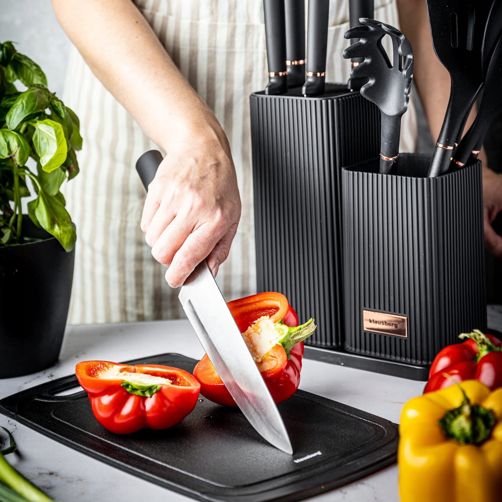 Кухонные ножи, установленные в квартале с кухонной посудой и расмечательной доской 12-Ele Klausberg KB-7835