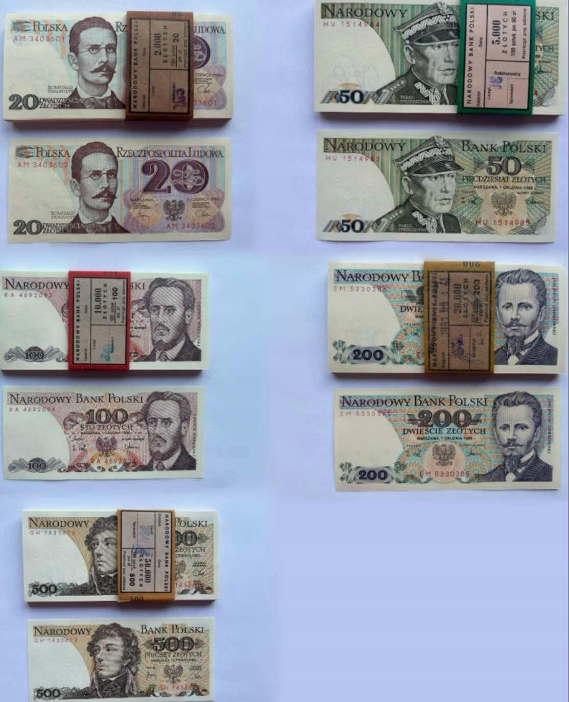 НАБІР З 5 ШТ БАНКНОТ PRL 20 - 500 СТАН UNC