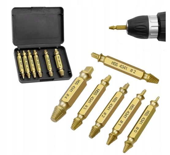 Набор битов для скручивающих винтов - это продукт, который открутит поврежденный винт или винт. Соединение в одном наборе для бурения сломанного винта и оправдания делает весь процесс чрезвычайно быстрым. Чтобы открутить сломанный винт, просверлите отверстие, а затем выберите соответствующие размеры оправдания и прикрутите его влево, пока весь винт или высокие каблуки не будут откручены. Отвертки изготовлены из прочного материала