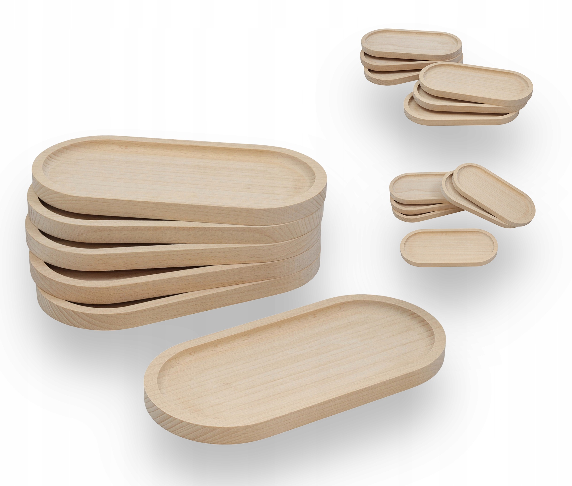 Набор из 6 ДЕРЕВЯННЫХ БУКОВЫХ ПОДНОСОВ - подносы для сервировки и украшения