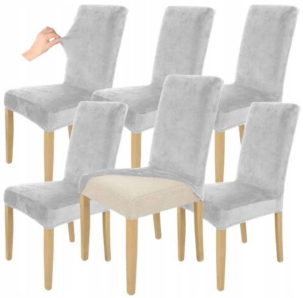Набор из 6 шт. Крышка покрытия для стула светло -серый велюр гибкий