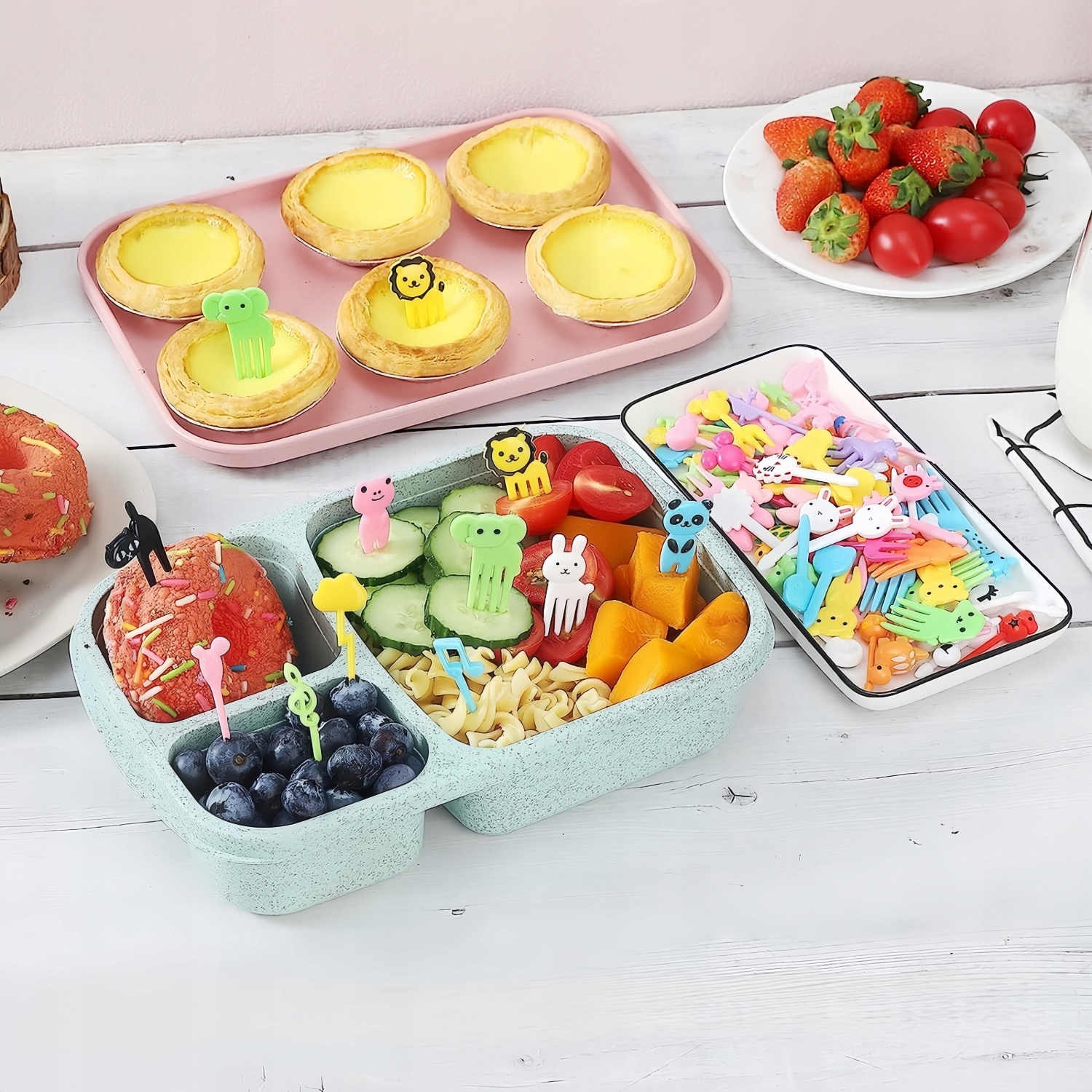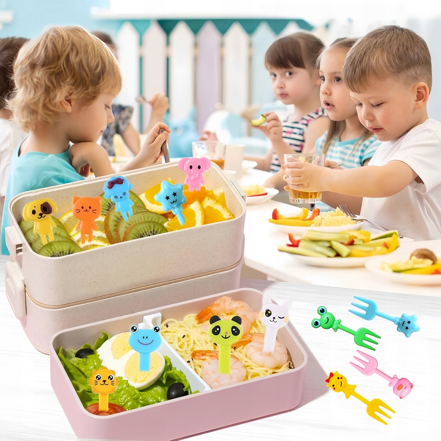 НАБОР ИЗ 60 МИНИ-ВИЛОК ДЛЯ МЕРОПРИЯТИЙ - ЖИВОТНЫЕ ФРУКТЫ ОВОЩИ ДЕСЕРТЫ