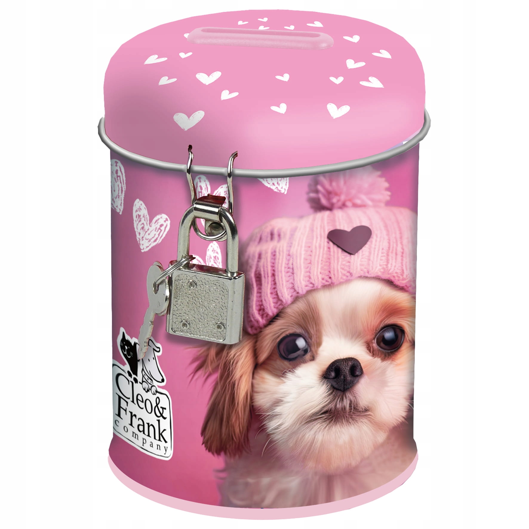 Прочная, металлическая копилка в форме цилиндра с декоративным принтом. В комплект входит навесной замок и два ключа. Крышка, закрывающаяся на замок, сохранит ваши сбережения каждый день.