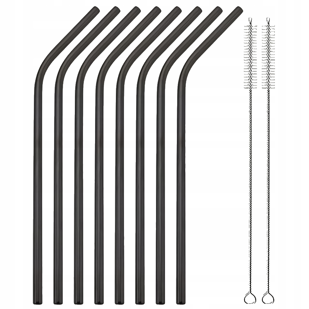 Набор из 8 металлических черных соломинков + 2 металлических чистки кисти
