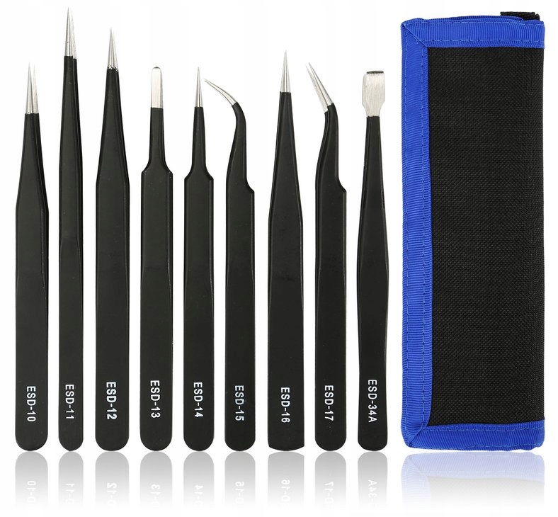 НАБОР ИЗ 9 ПИНЦЕТОВ МЕТАЛЛИЧЕСКИЙ ПИНЦЕТ ESD