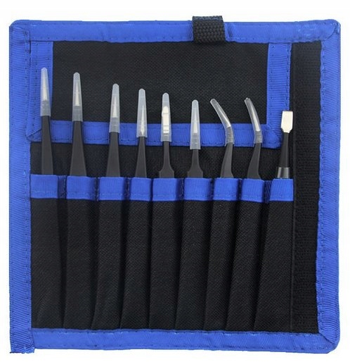 Набор из 9 антистатических пинцетов + ЧЕХОЛ