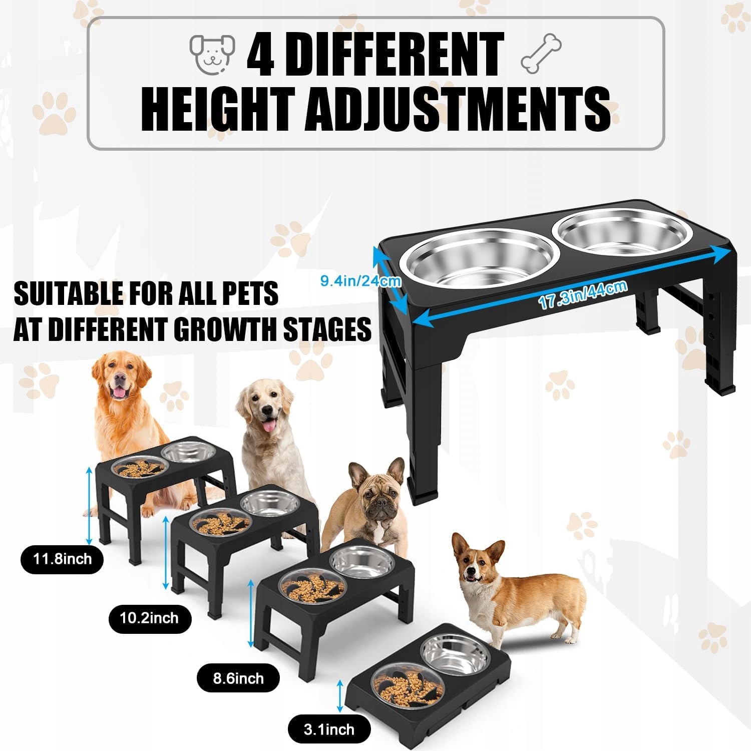 ✨nasze podwyższone isski dla psów wykonane są ze stali nierdzewnej, bezpieczne dla psa, odporna na zachlapanie miska na wodę dla psa może by regulowan , 4 разных высоты, чтобы расти с собакой от щенка до старшего. Регулируя разные высоты