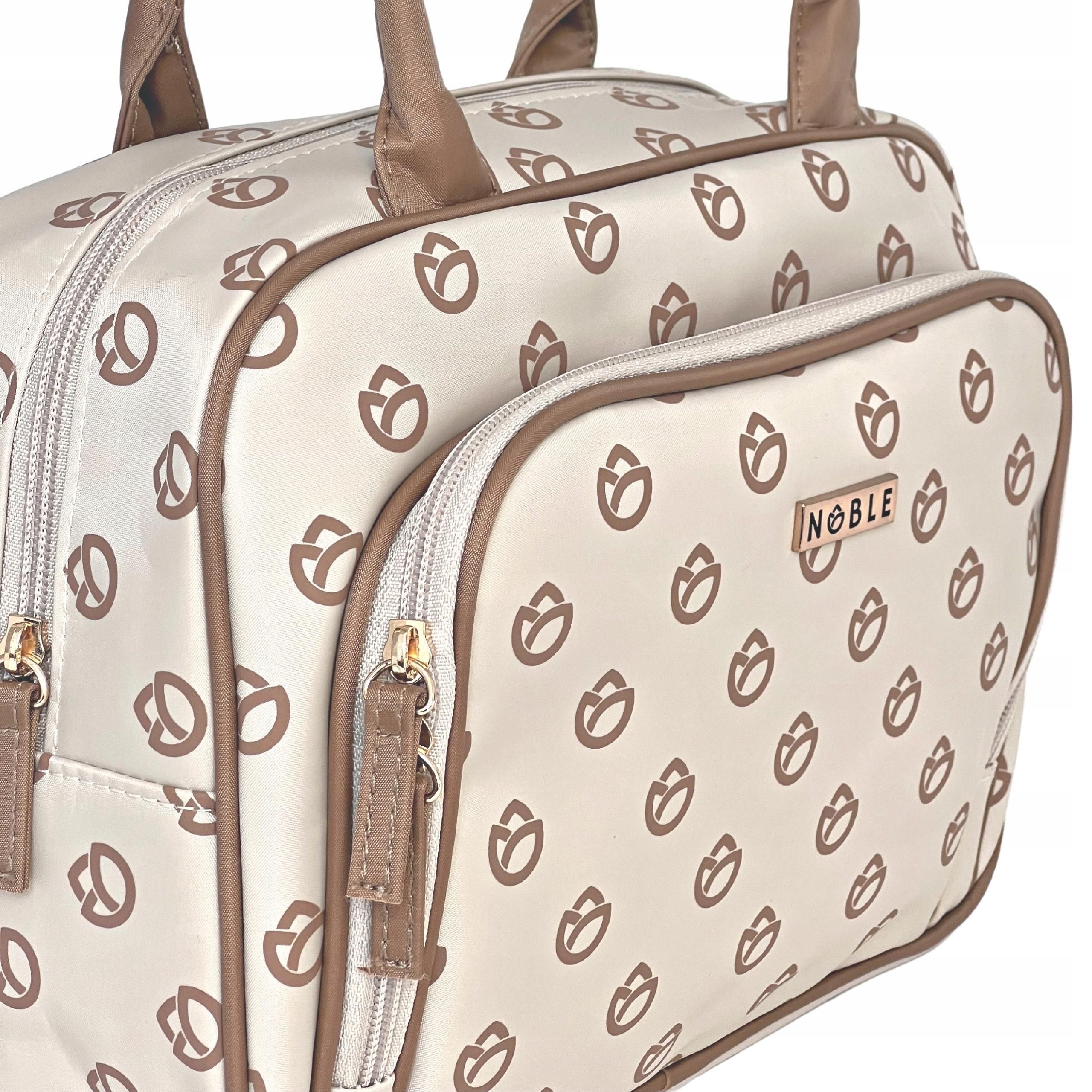 Одна из самых узнаваемых коллекций косметичек бренда NOBLE®. Коллекция бежевых косметичек с золотой рамкой из высококачественного нейлона, легко чистящихся. Материал косметички полностью покрыт водяными знаками с логотипом бренда. Другие модели из коллекции ищите на других наших аукционах Allegro.